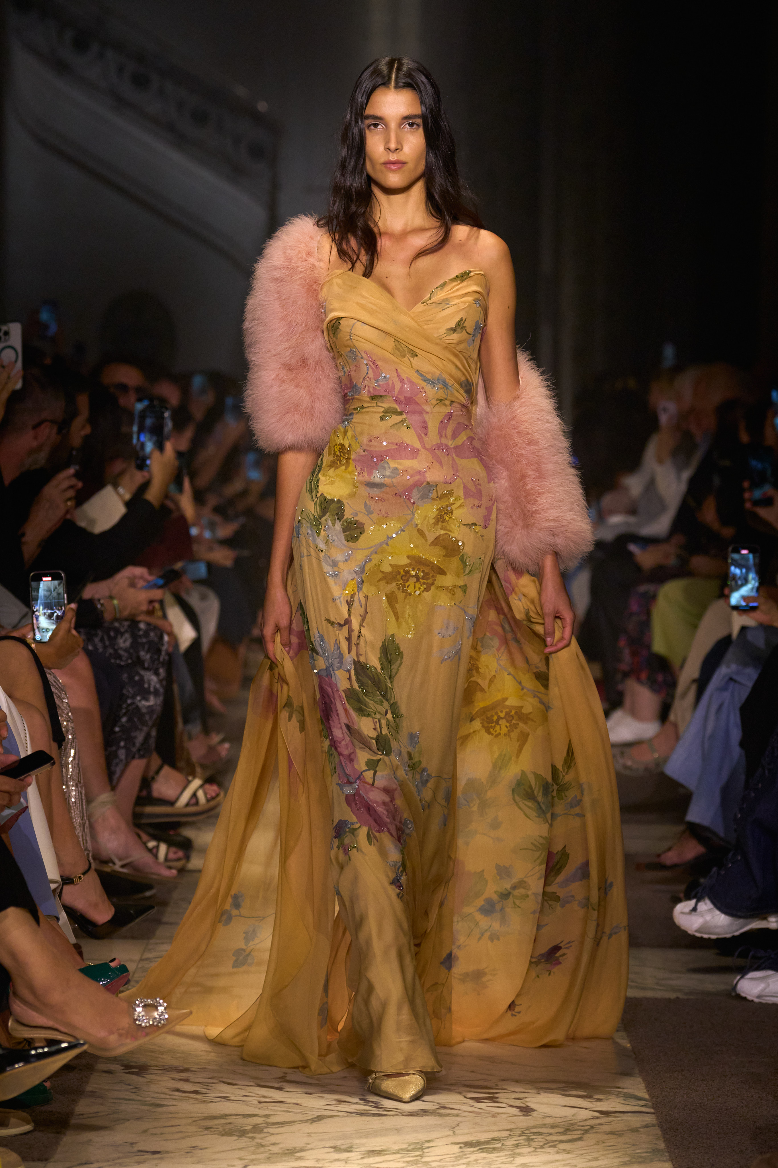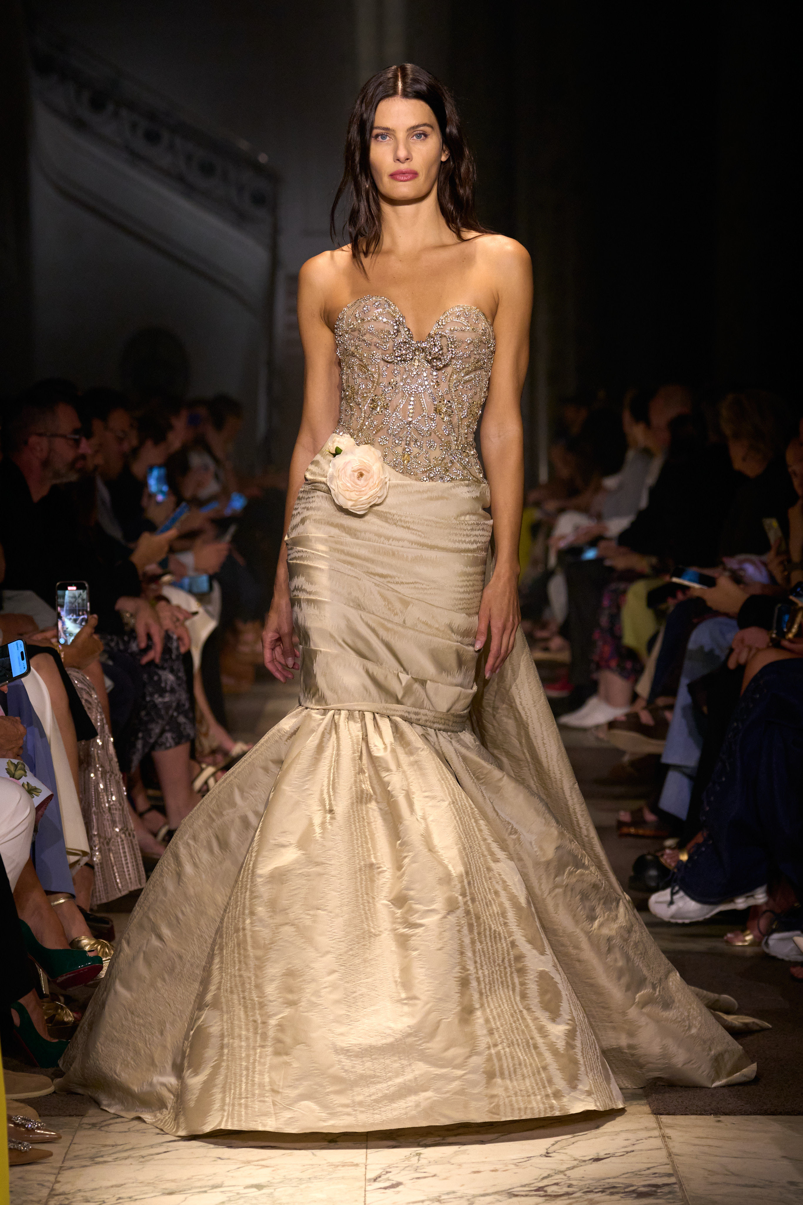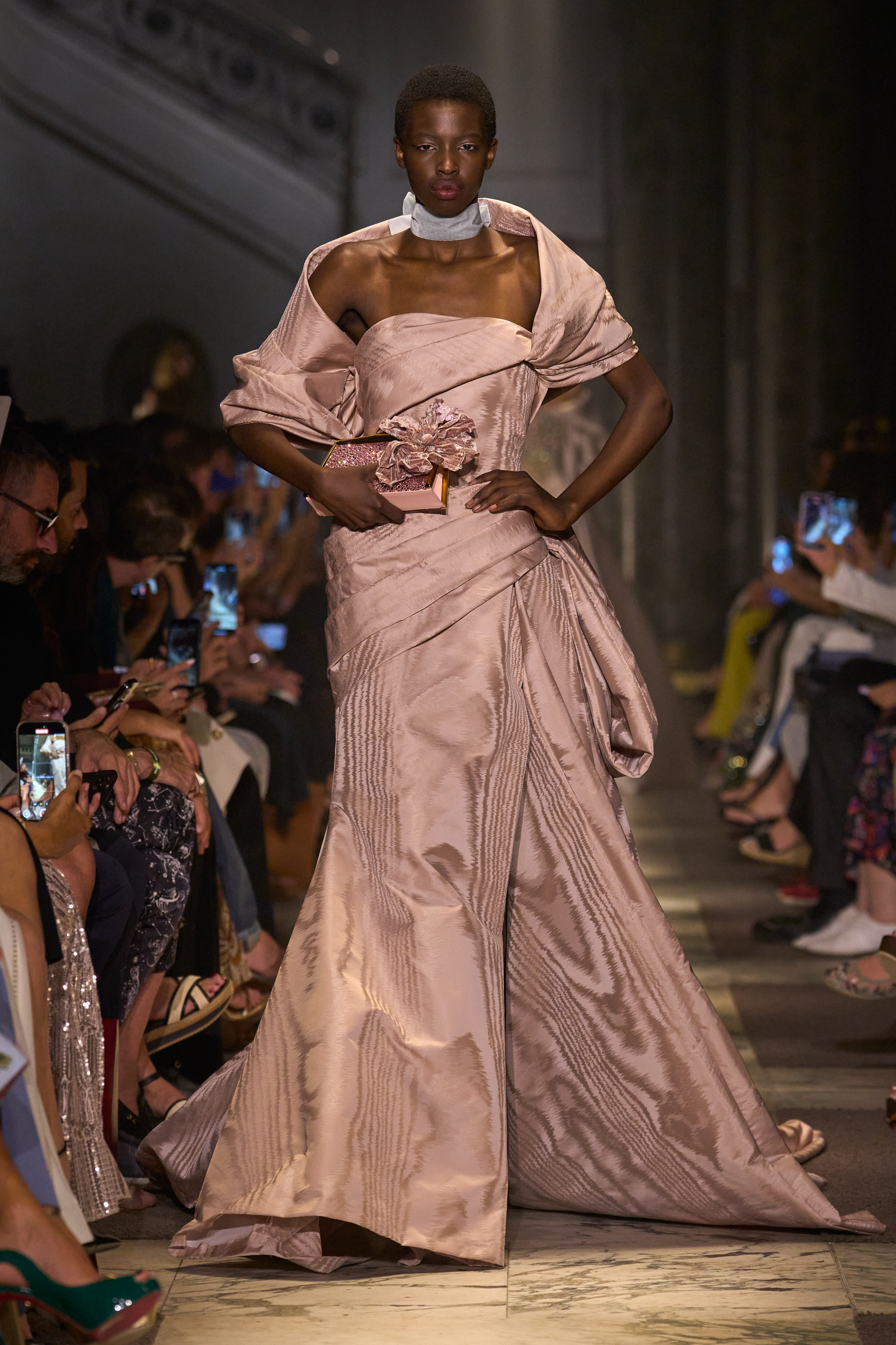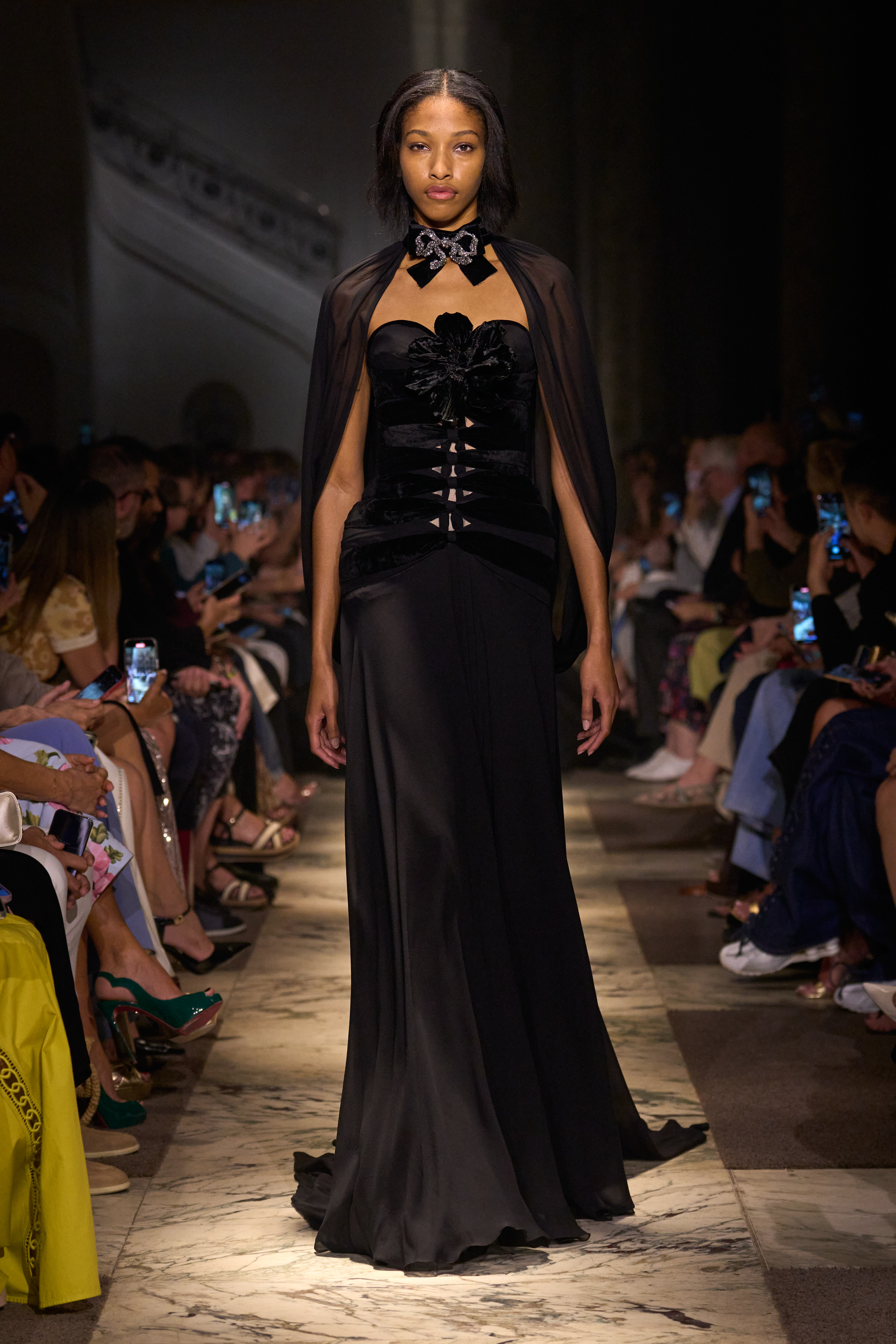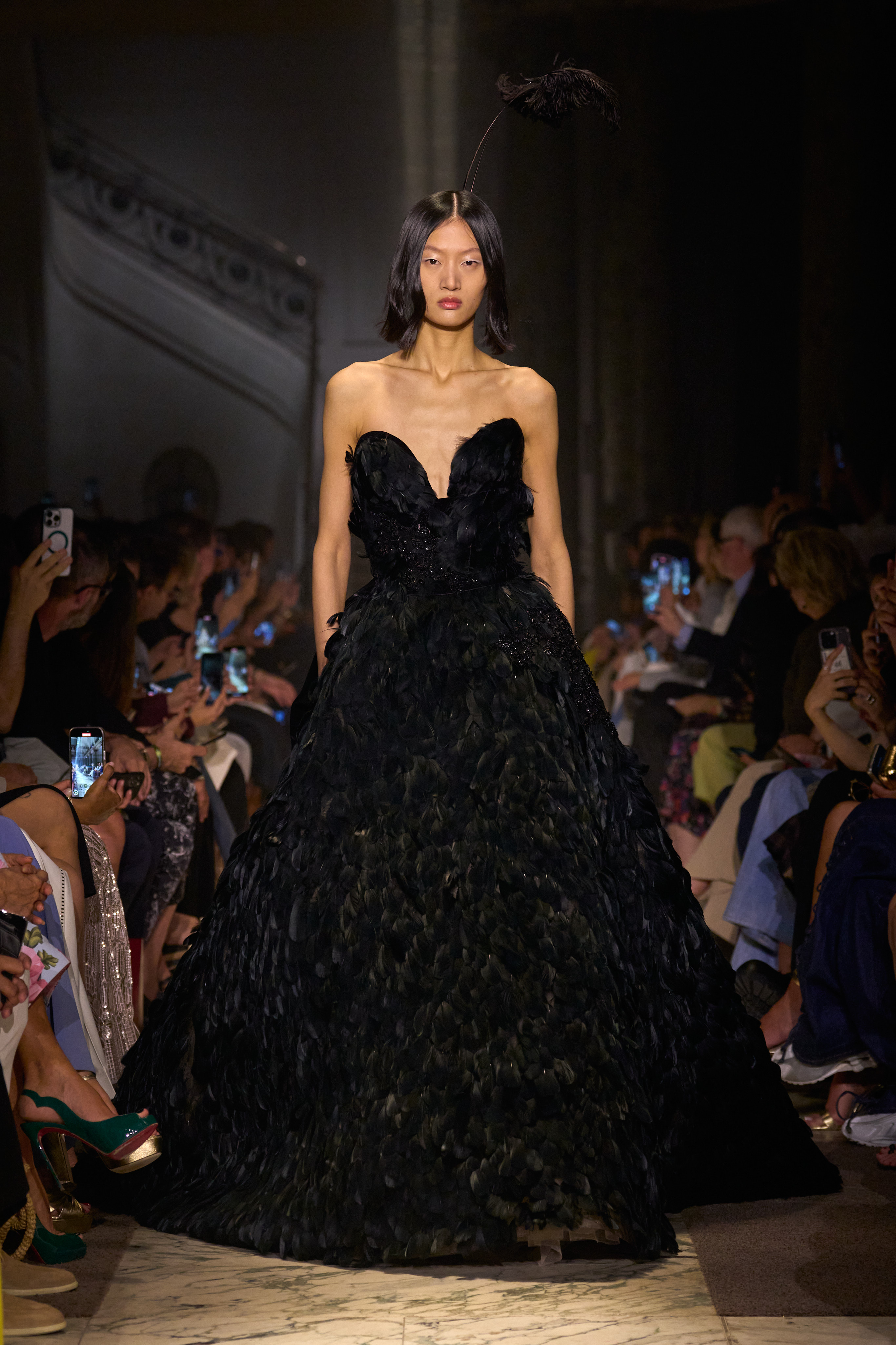 A látványos "La Nouvelle Cour" nevet viselő ruhasorozat érzéki sziluettekkel és szoborszerű részletekkel írja újra a csillogás és az elegancia fogalmát. A francia fűzőművészet új értelmet nyert, a fémes sziluettek, a csipkezuhatagok és a bordázott bársonyok kitűnő kiegészítői a klasszikus mídereknek. A drapériaszerűen leomló moaré izgalmas fényjátékot kölcsönöz az egyes szetteknek, miközben a macaron árnyalatok – a nude, a rózsaszín, a vízkék és a menta – finom kontrasztban állnak az elegáns feketével és arannyal.