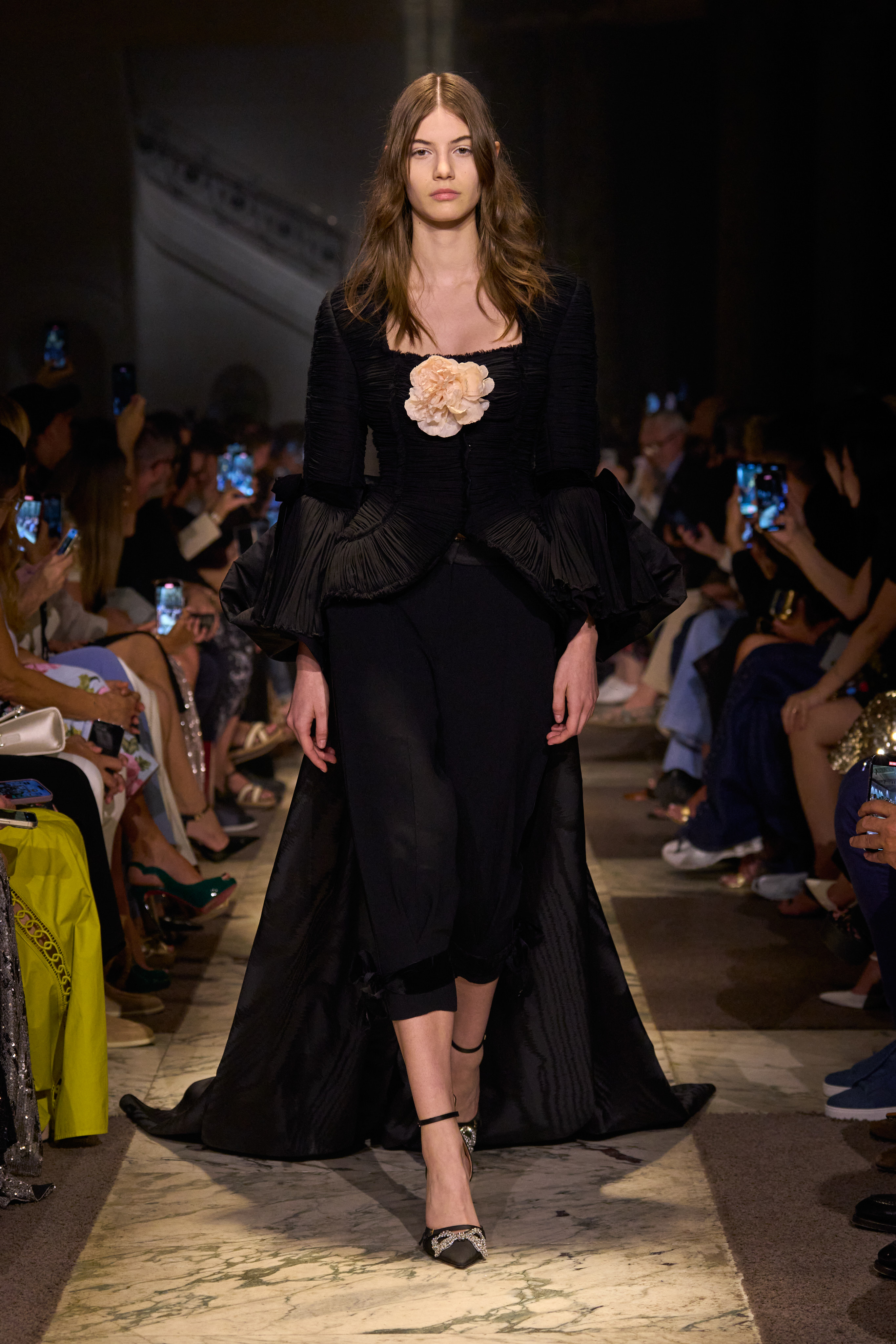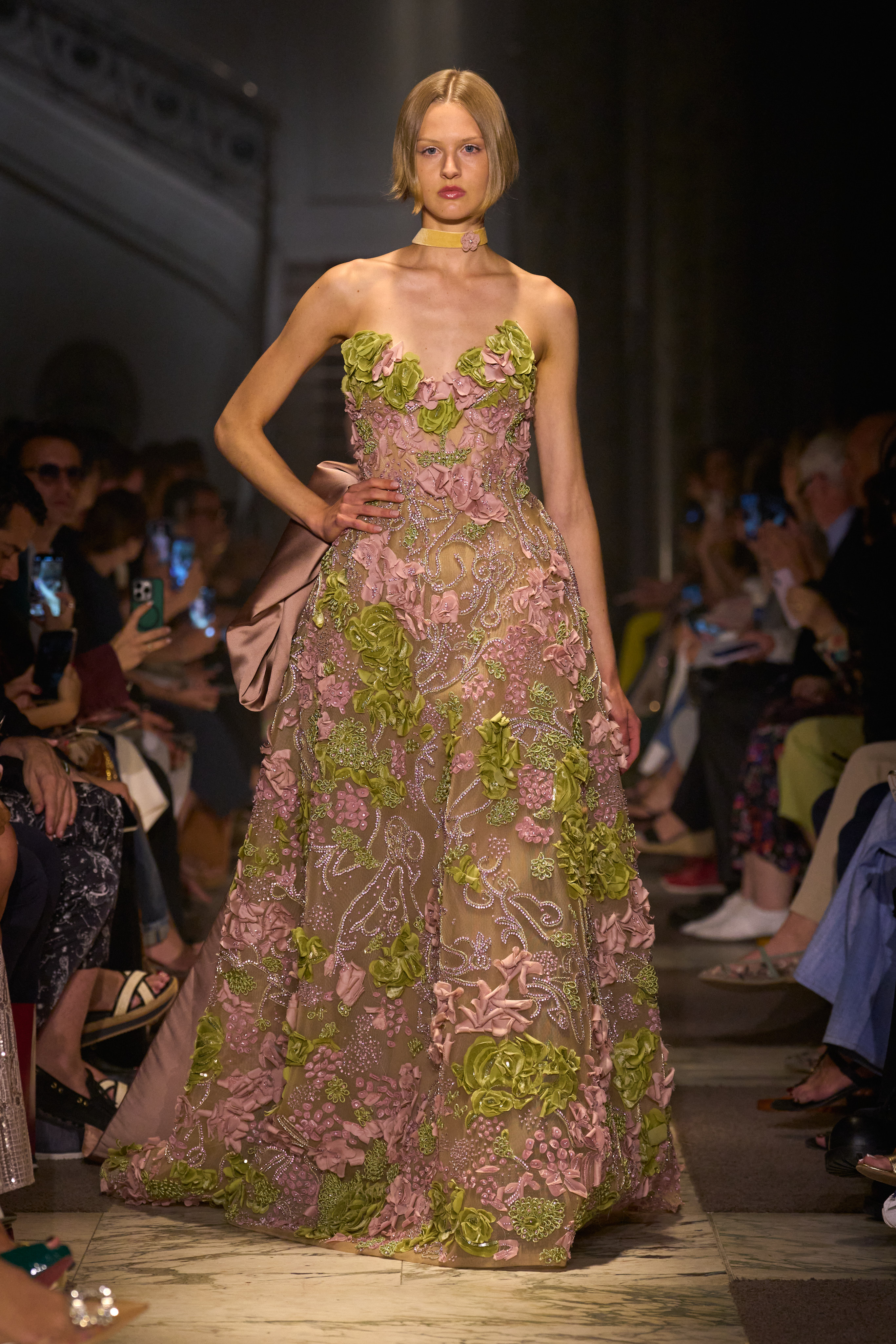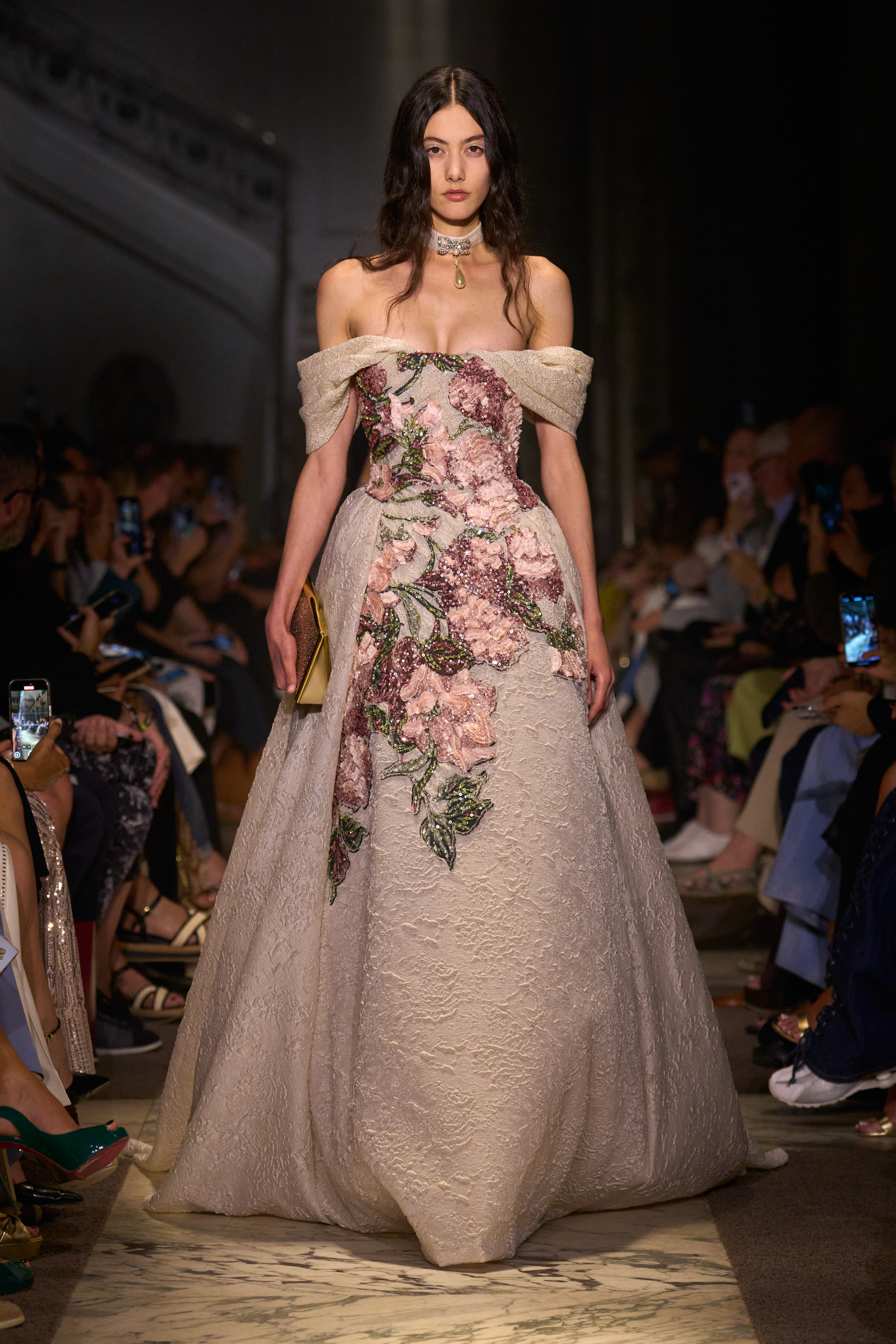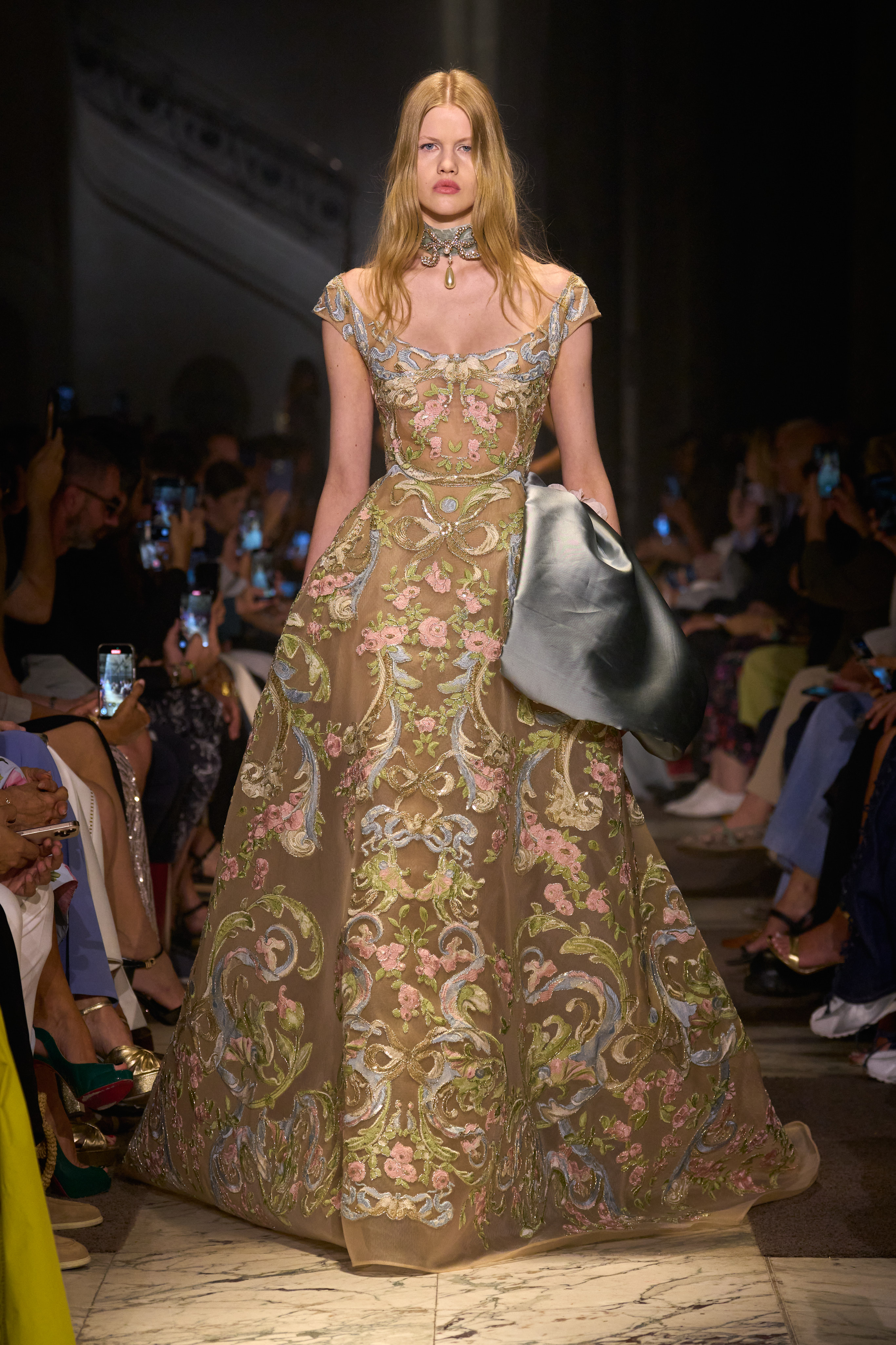 A bájos masnik, a lehengerlő virágminták, a ragyogó brokátok és tollas részletek teremtik meg azt a játékos, mégis előkelő atmoszférát, amely minden egyes darabban ott rejlik. A kiegészítők – köztük az aprólékosan kidolgozott táskák – tovább mélyítik a couture-ről alkotott világképünket.