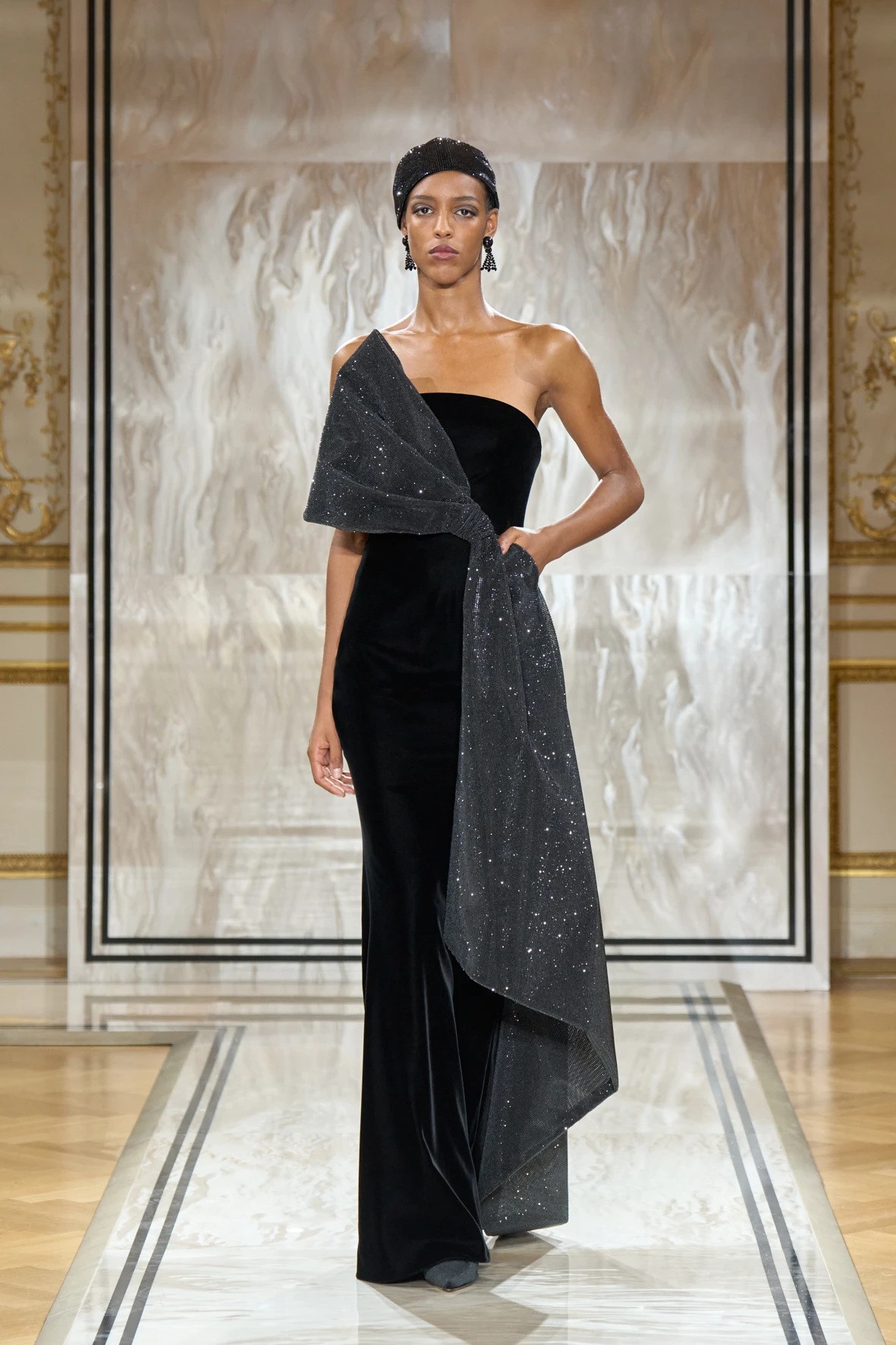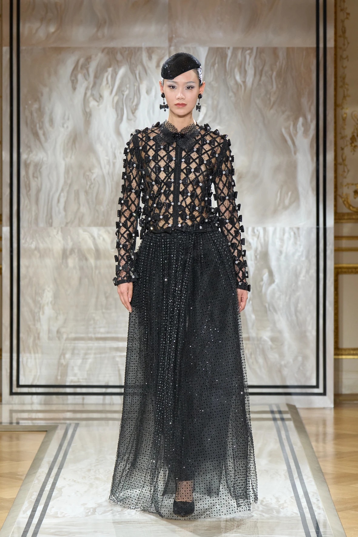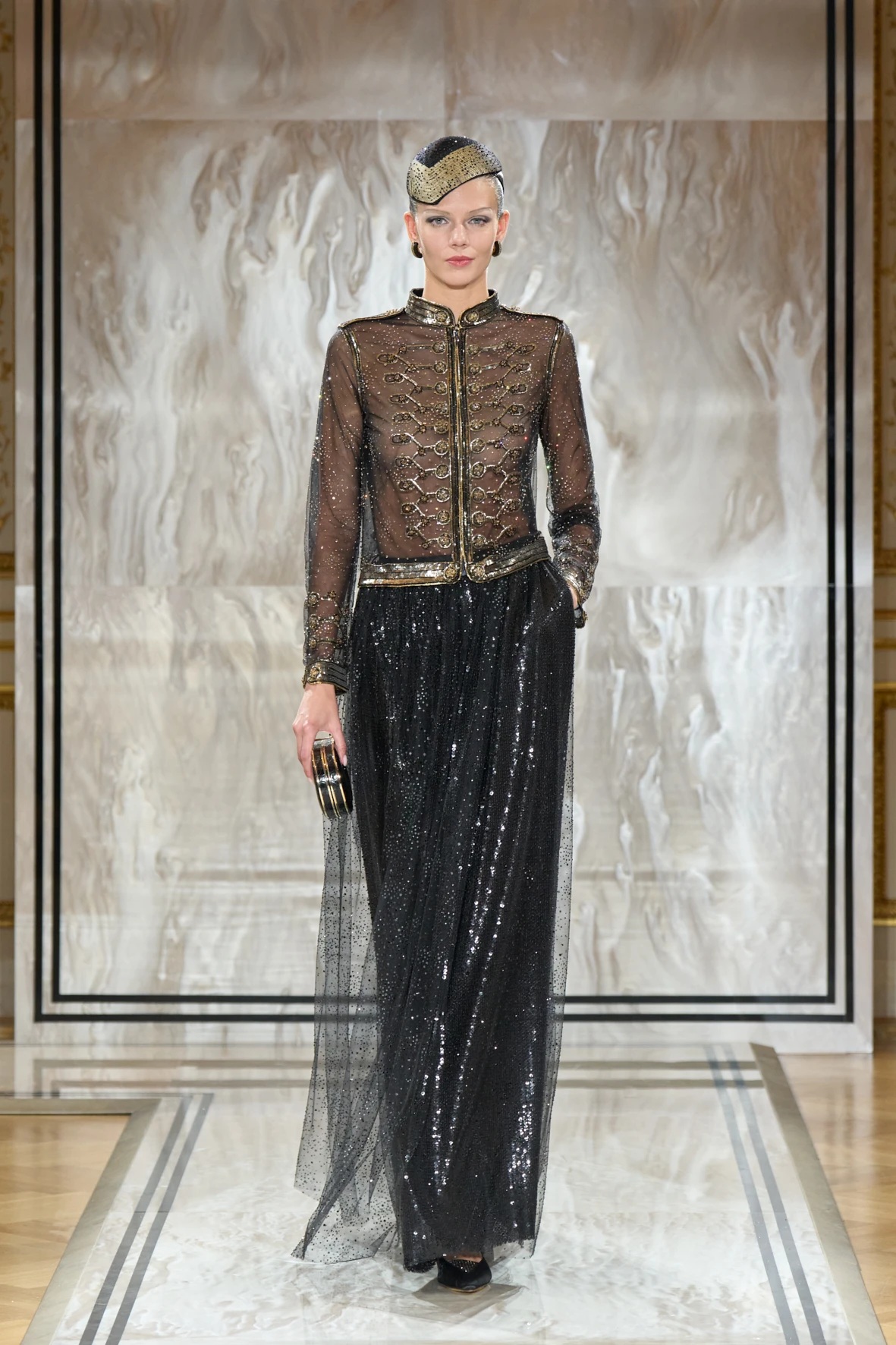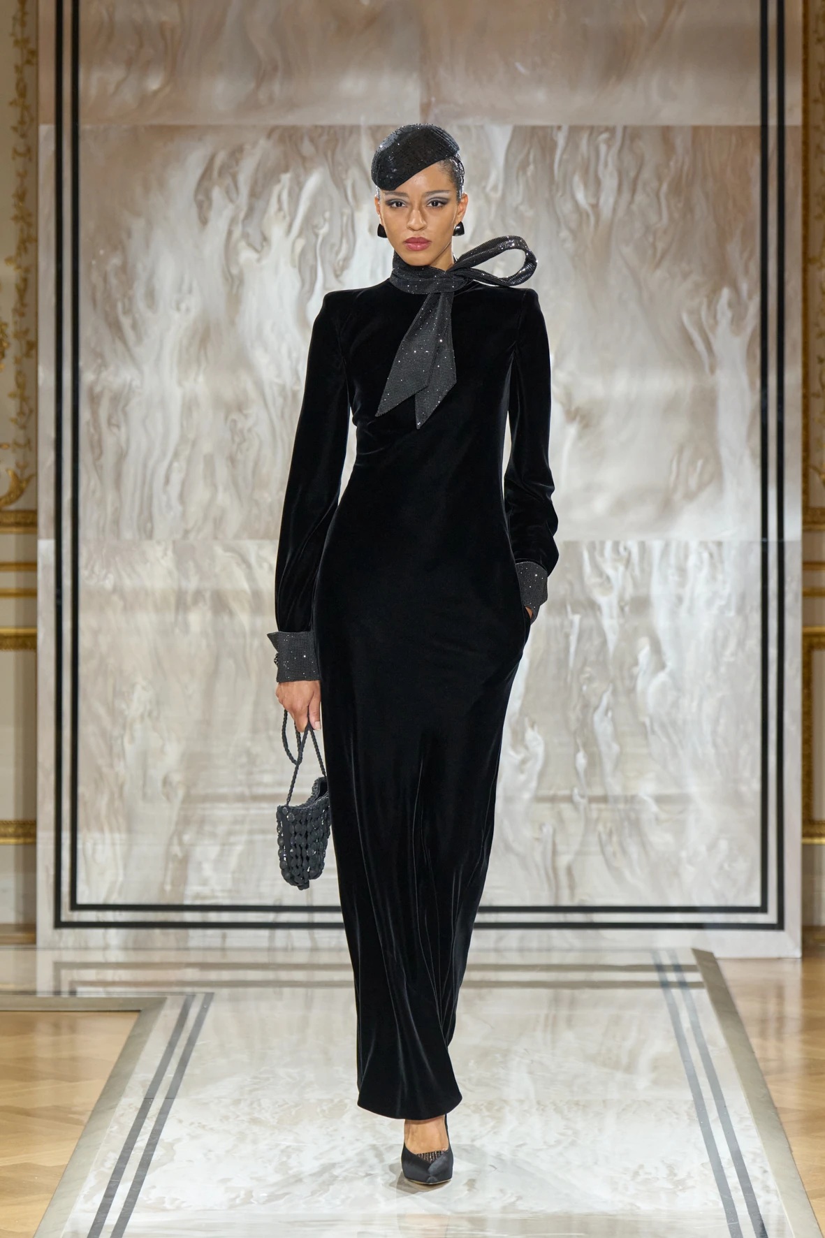 Bár Armanit gyakran a visszafogottság mestereként ünneplik, ezúttal engedte, hogy a teátrális érzékiség a textúrák tobzódásával és a fekete ezüsttel-arannyal való keverése új dimenziókat nyisson meg. A flitterek, a virágos applikációk, a kristálydíszítések és a bársony intarziák a felszíni ragyogás csendes káoszába csúsztak bele. A látszólagos lehetetlen közepette egy fontos kérdést is felvet: lehet-e egyszerre ragyogni és elrejtőzni?