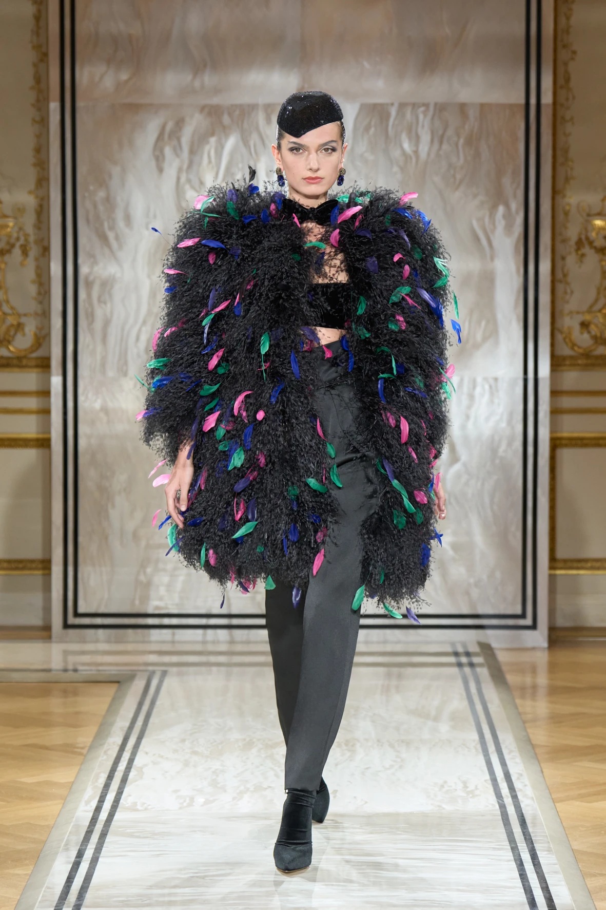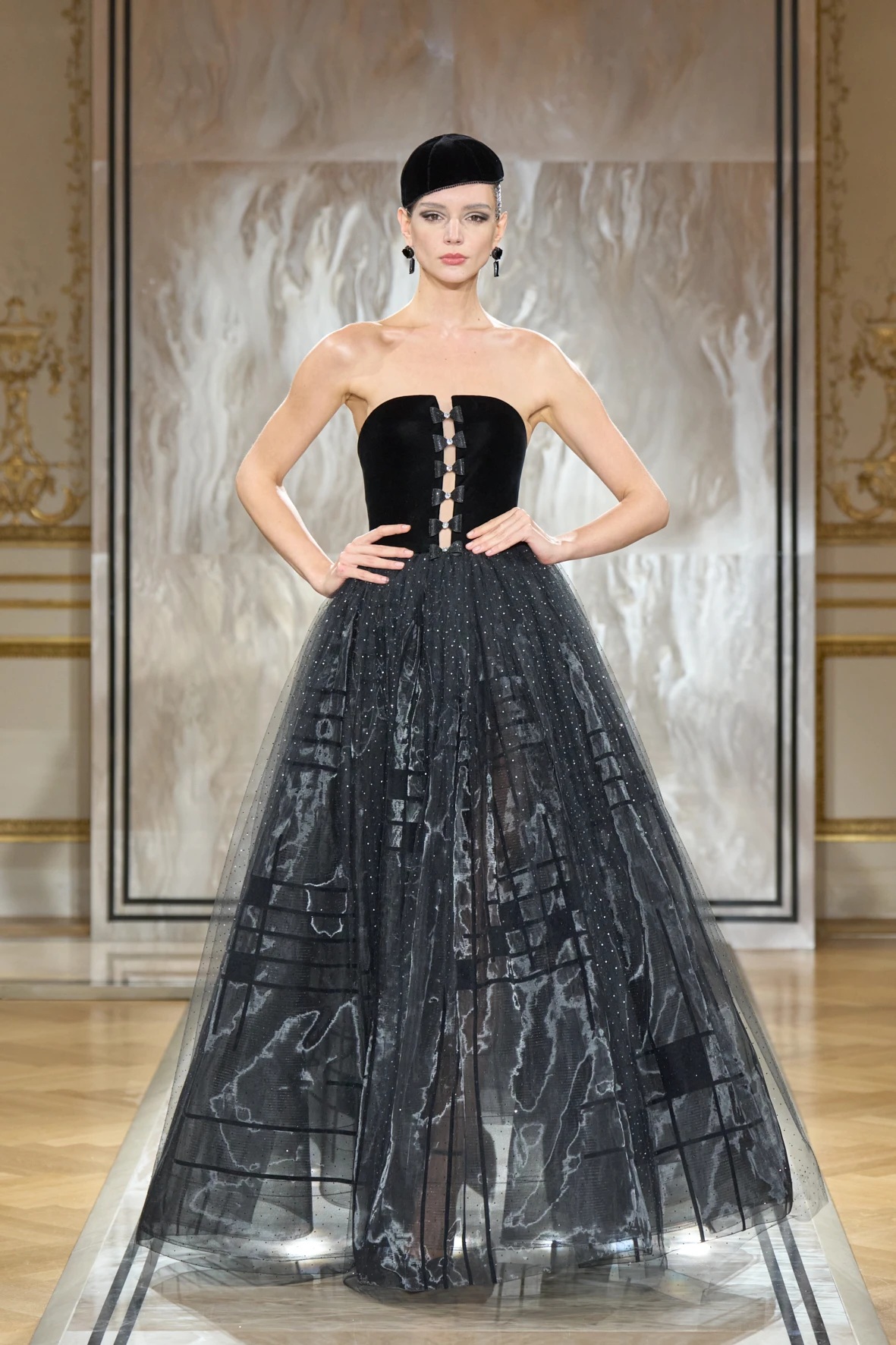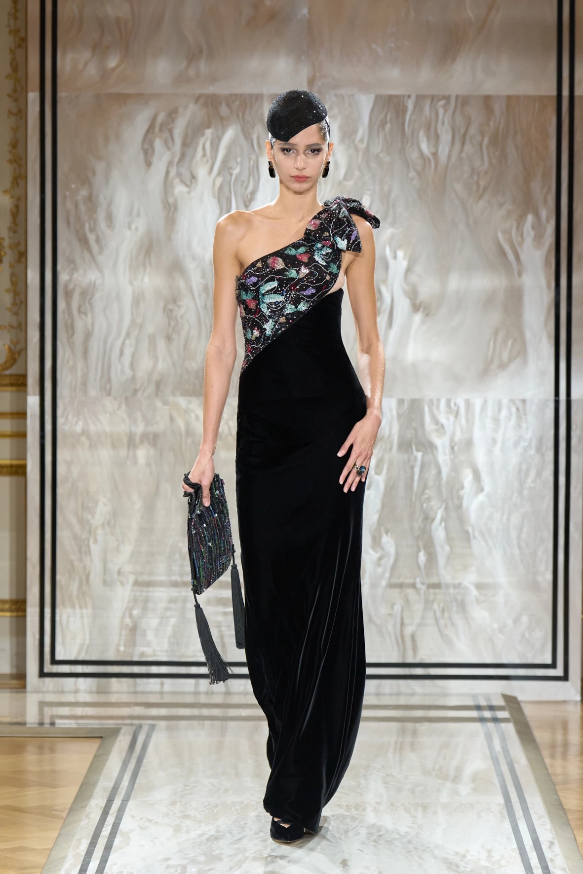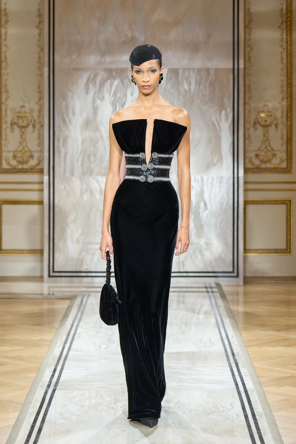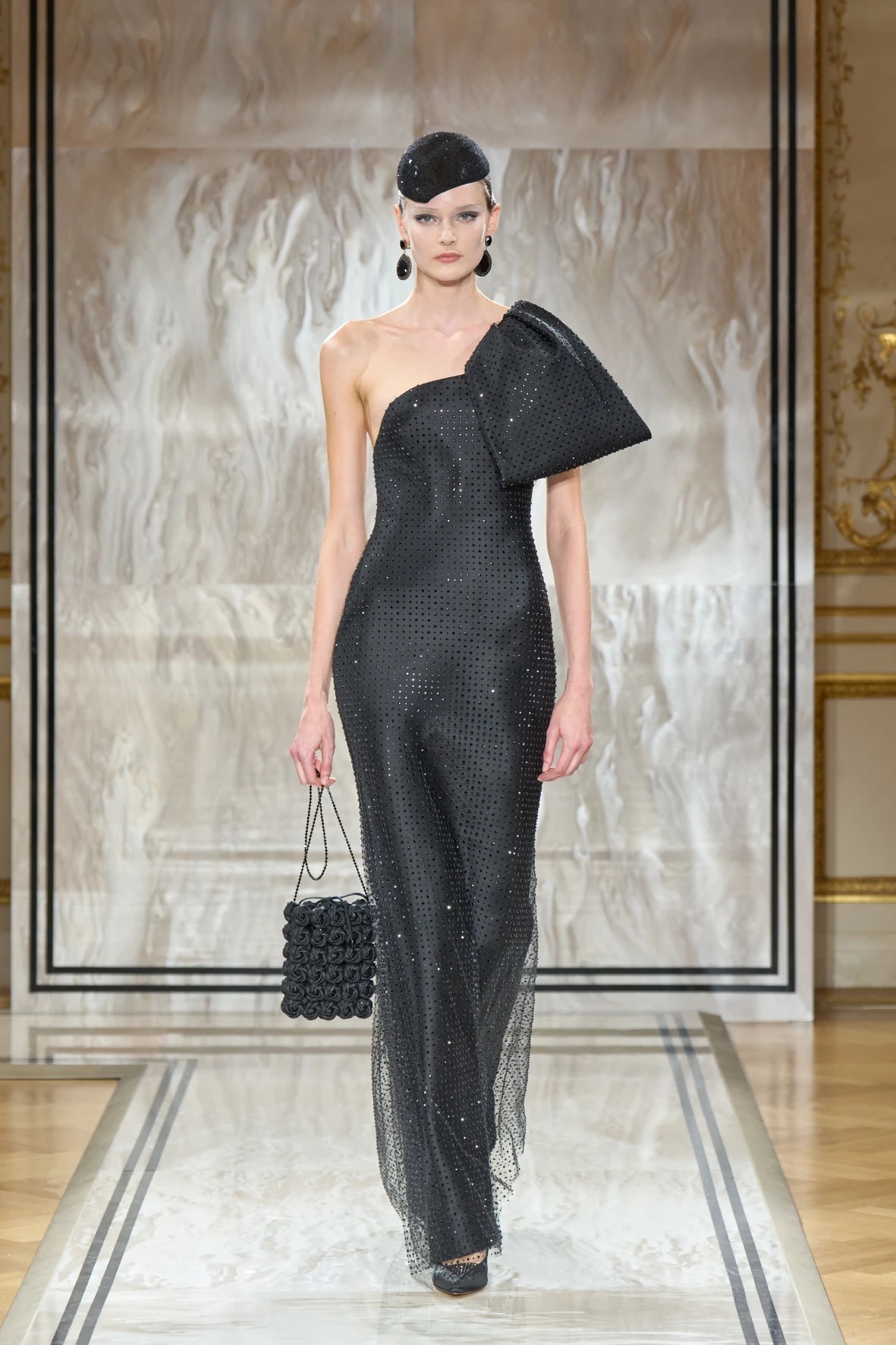 Bár Armanit gyakran a visszafogottság mestereként ünneplik, ezúttal engedte, hogy a teátrális érzékiség a textúrák tobzódásával és a fekete ezüsttel-arannyal való keverése új dimenziókat nyisson meg. A flitterek, a virágos applikációk, a kristálydíszítések és a bársony intarziák a felszíni ragyogás csendes káoszába csúsztak bele. A látszólagos lehetetlen közepette egy fontos kérdést is felvet: lehet-e egyszerre ragyogni és elrejtőzni?