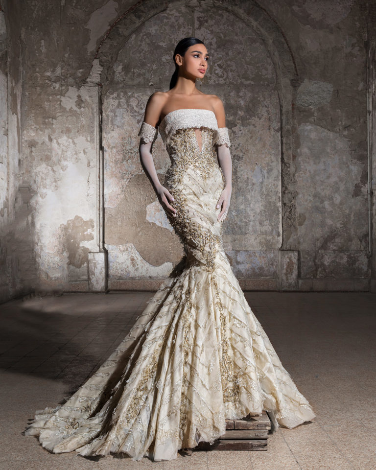 A bemutató helyszíne egy omladozó libanoni palota volt, amelynek látványa tovább mélyítette az emlékezet és a mítosz motívumait. A Ziad Nakad kollekció egy lélegzetelállító menyasszonyi ruhával zárul, a légiesen fodrozódó dressz úgy csillogott a márványpadlón, mintha a holdfényt szőtték volna bele. Az éteri pillanat minden kétséget kizáróan örökre bevésődik az emlékezetünkbe.