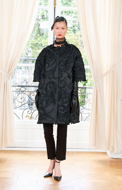 Az idei ruhák lélegzetelállító arabeszk mintákat vonultatnak fel, amelyeket az úgynevezett „architekturális szaténöltés” technikájával készítettek. A kézimunka művészi precizitása és a díszítések részletgazdagsága minden egyes darabot önálló alkotássá emel. A gyűjtemény szigorúan fekete-fehér színvilágra épül, ez a minimalizmus azonban nem hűvös, hanem megrendítően elegáns – hagyja, hogy a forma, a textúra és a fény-árnyék játéka beszéljen.