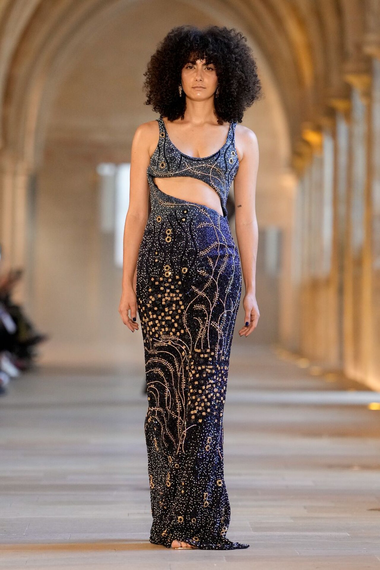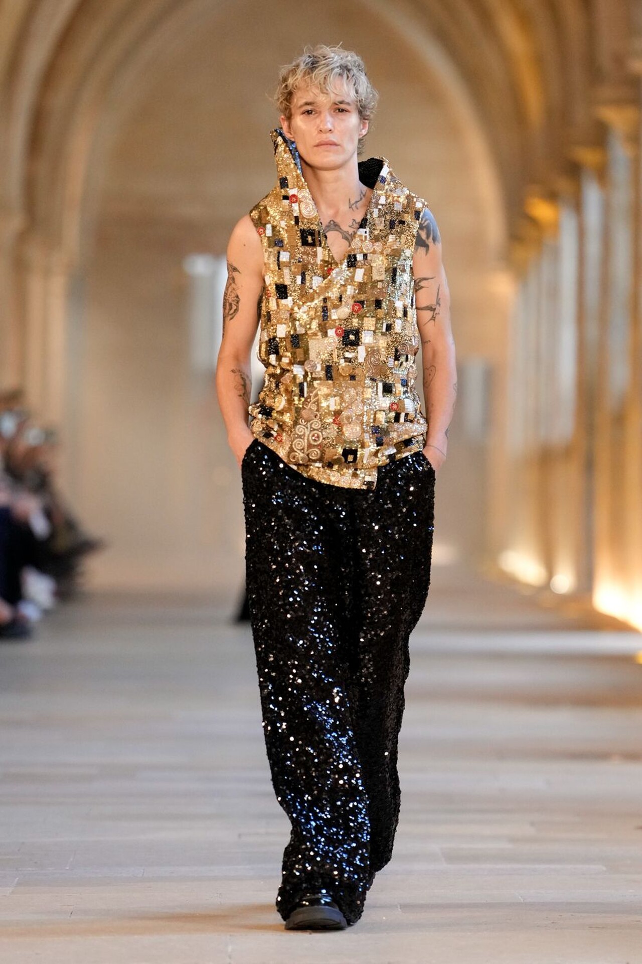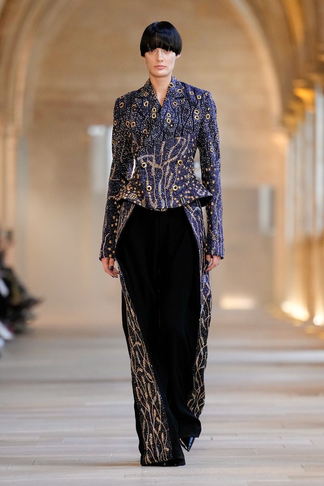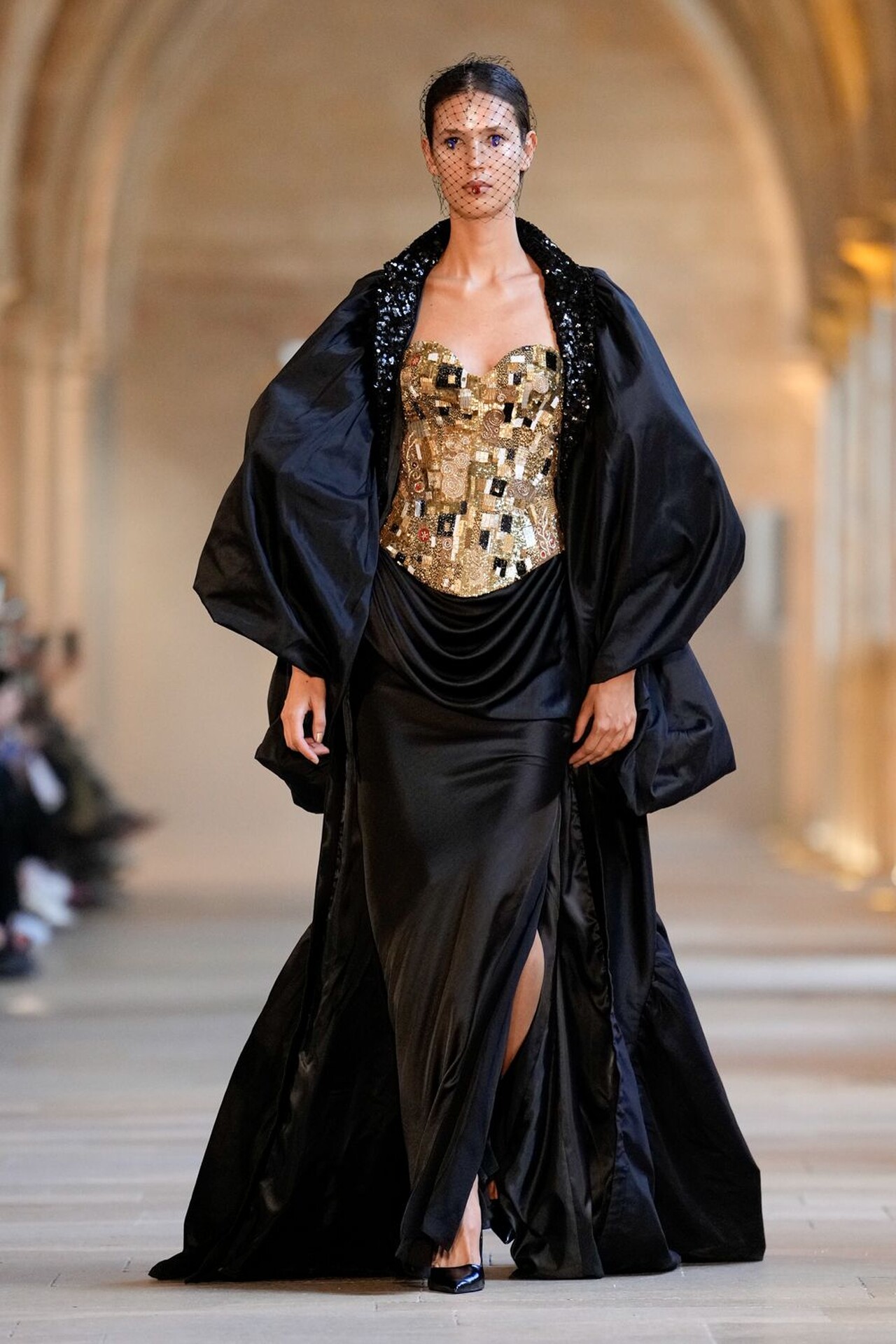 A szerelem hét szakaszán vezette végig a közönségét Rahul Mishra a párizsi Collège des Bernardins ősi falai között. Az indiai divattervező 2025-ös őszi-téli couture kollekcióját a szúfi költészet ihlette, amelyhez Klimt-aranymozaikokat, szárnyaló lótuszokat és szakrális hímzéseket társított. A vonzalom, az önátadás, a megszállottság és az extázis élménye kelt életre, miközben a divatot egy meditatív látomássá emelte.
