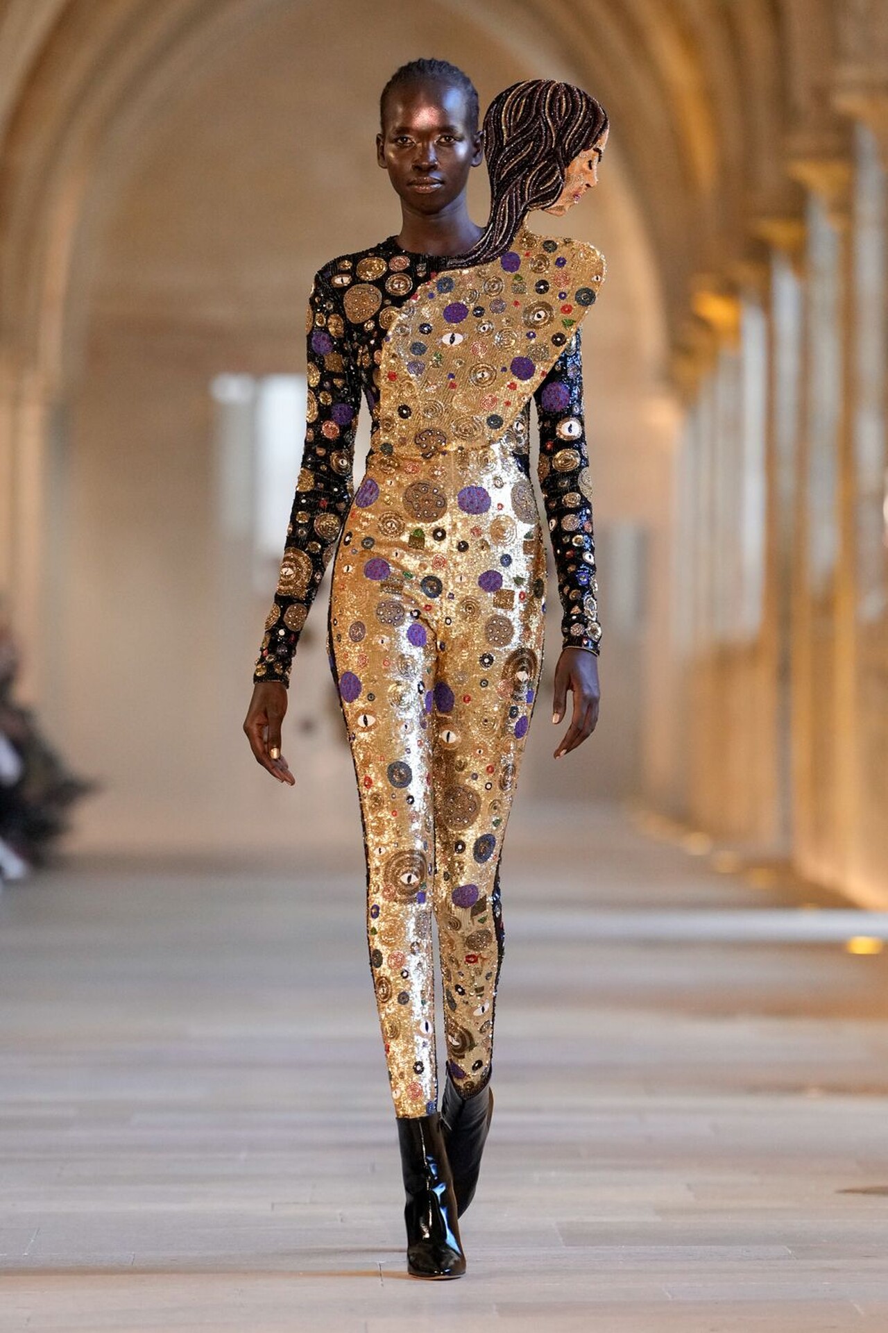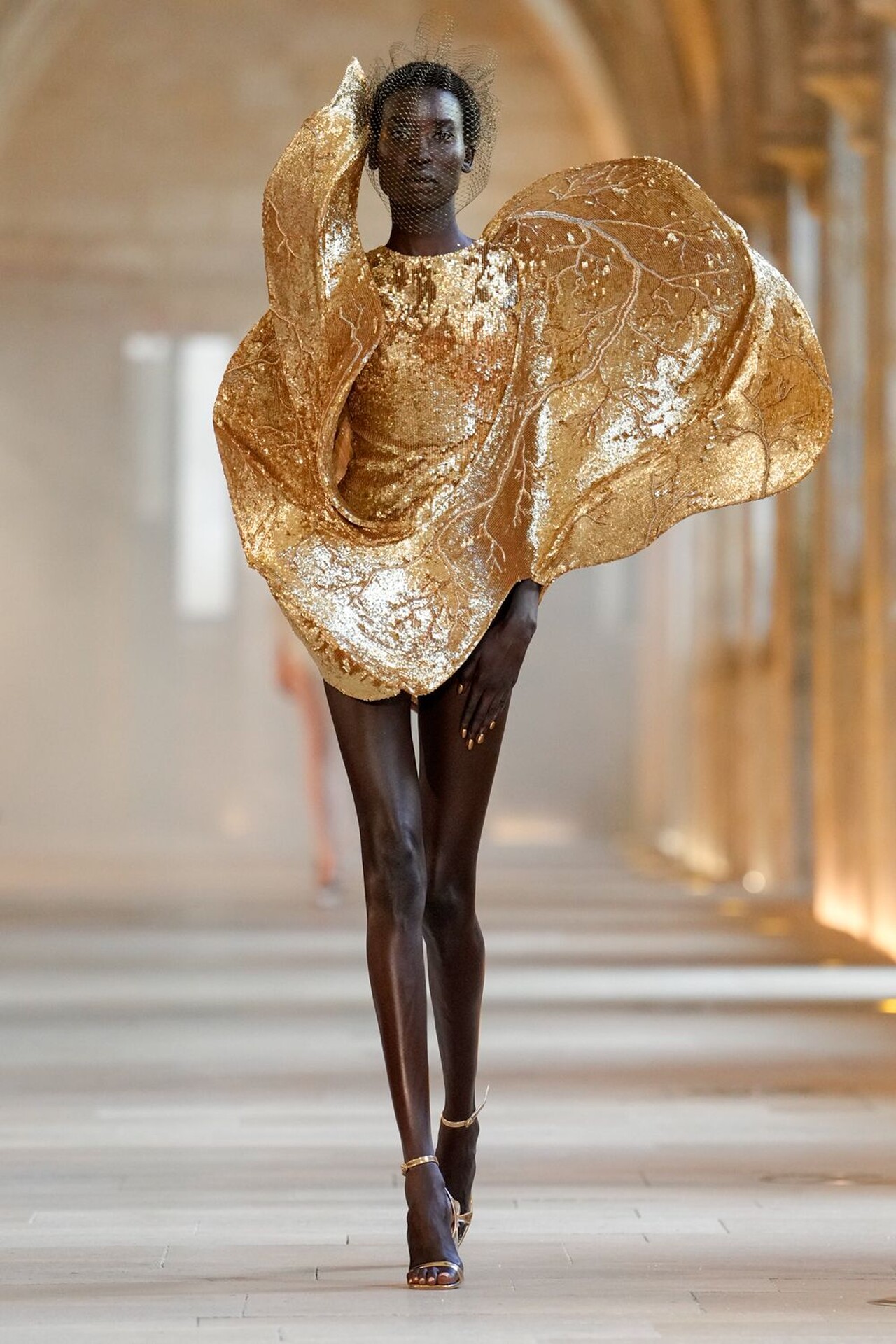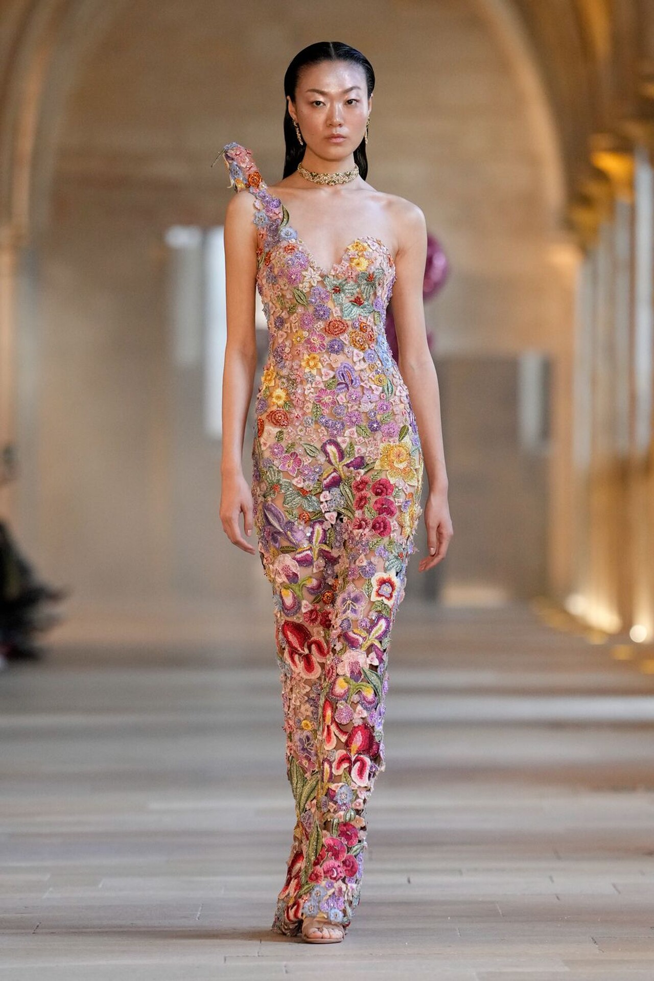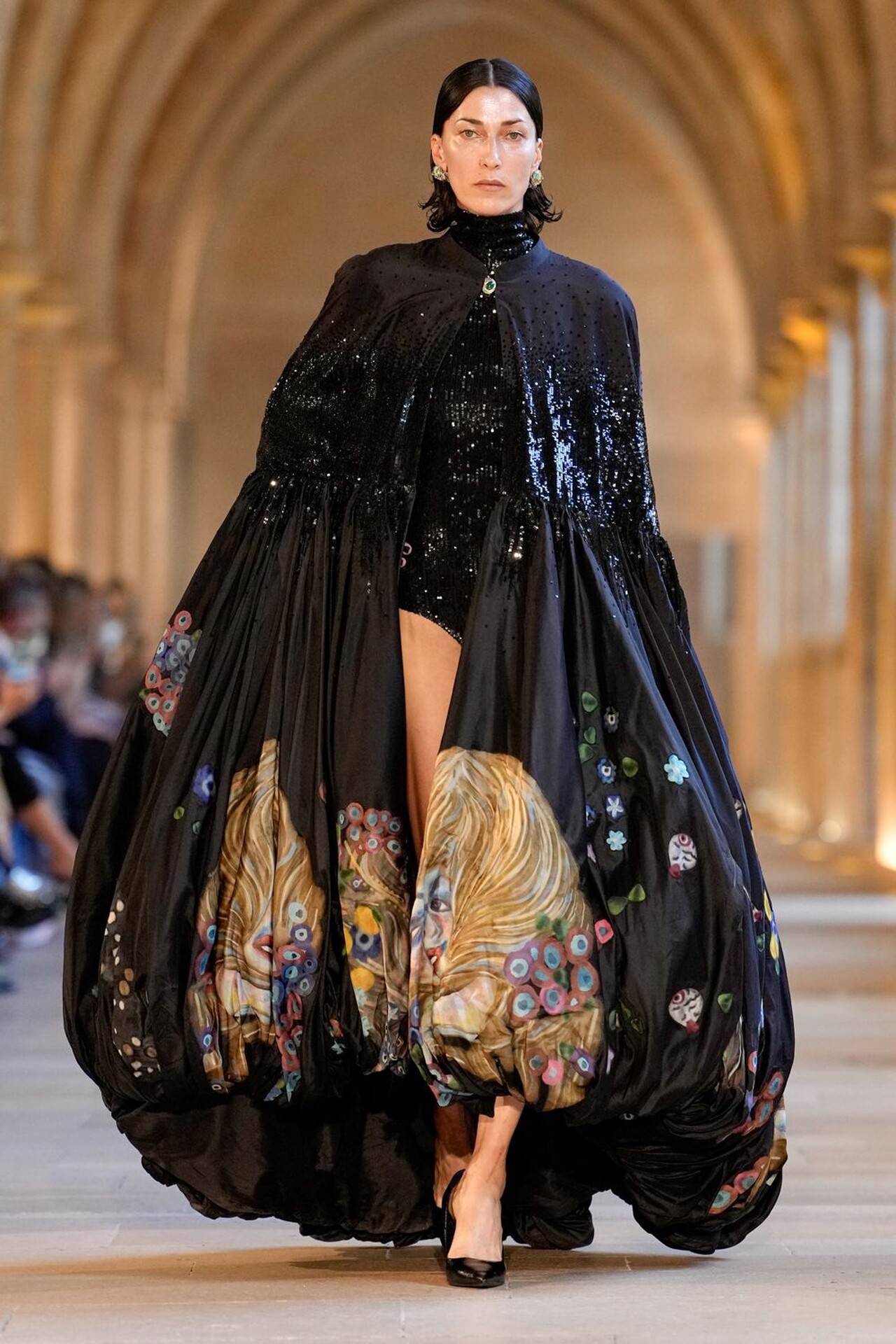 A szerelem hét szakaszán vezette végig a közönségét Rahul Mishra a párizsi Collège des Bernardins ősi falai között. Az indiai divattervező 2025-ös őszi-téli couture kollekcióját a szúfi költészet ihlette, amelyhez Klimt-aranymozaikokat, szárnyaló lótuszokat és szakrális hímzéseket társított. A vonzalom, az önátadás, a megszállottság és az extázis élménye kelt életre, miközben a divatot egy meditatív látomássá emelte.