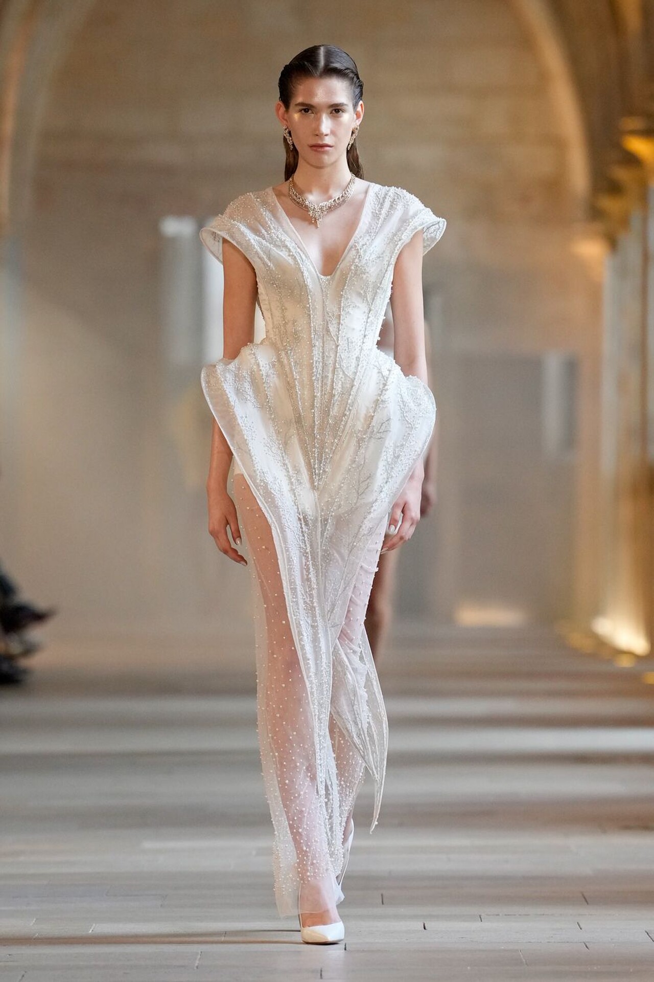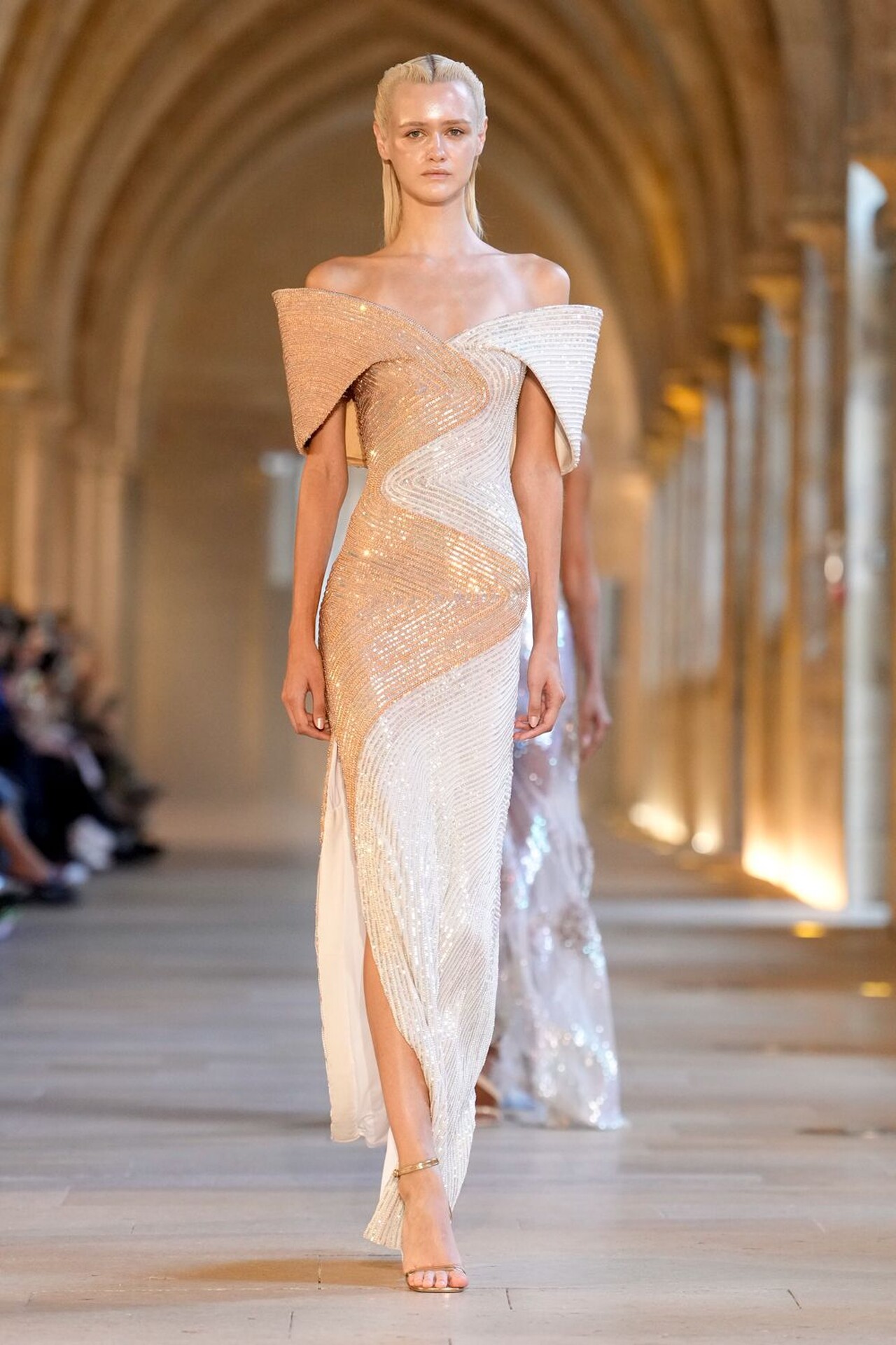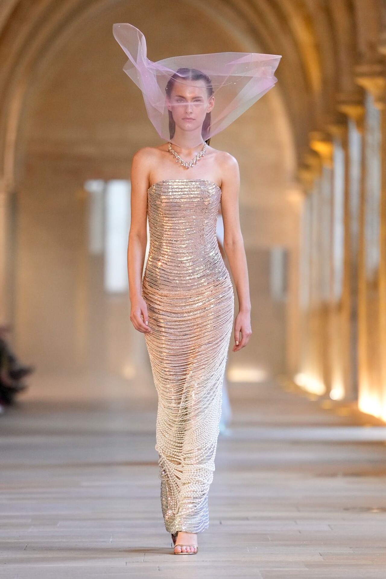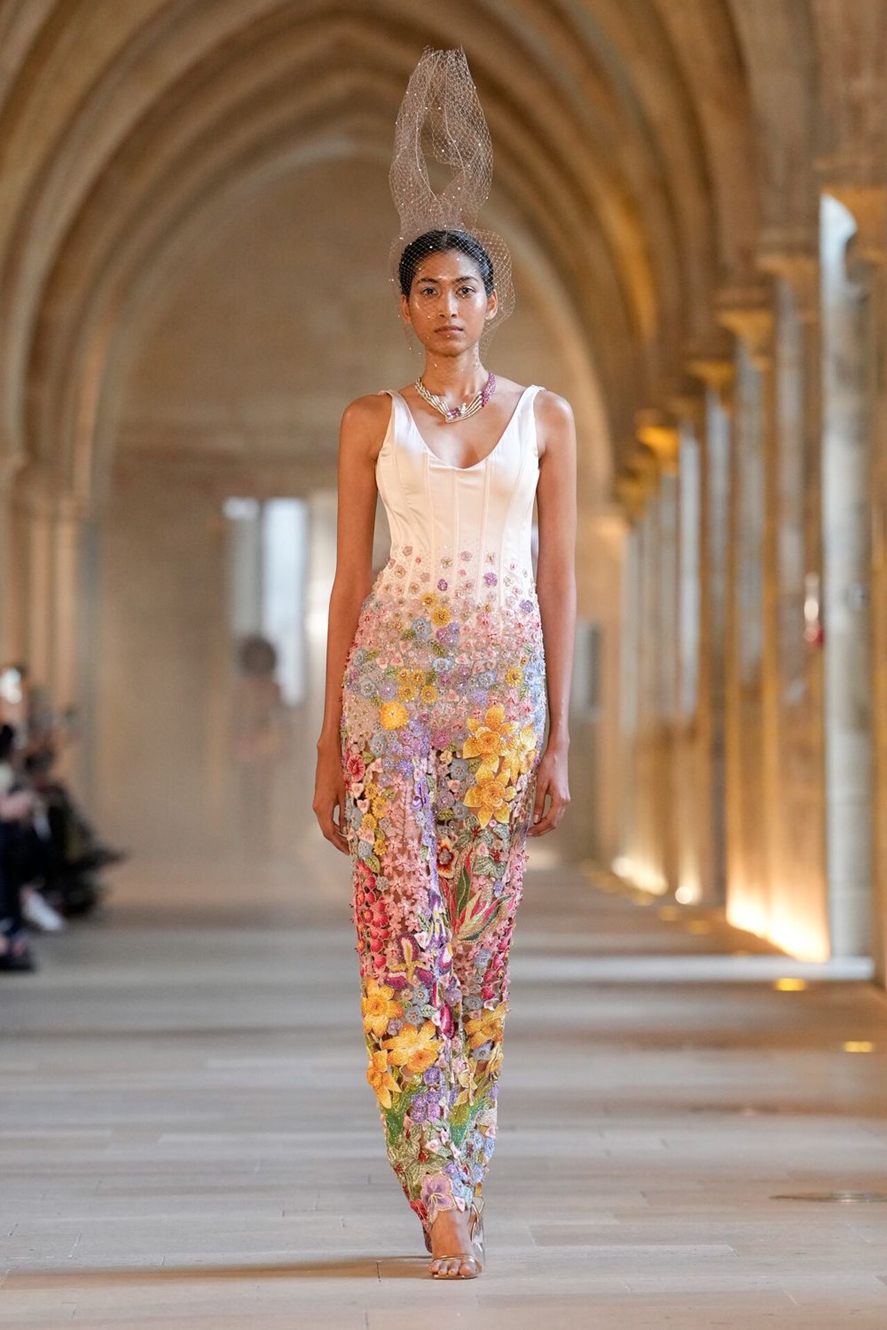 A szerelem hét szakaszán vezette végig a közönségét Rahul Mishra a párizsi Collège des Bernardins ősi falai között. Az indiai divattervező 2025-ös őszi-téli couture kollekcióját a szúfi költészet ihlette, amelyhez Klimt-aranymozaikokat, szárnyaló lótuszokat és szakrális hímzéseket társított. A vonzalom, az önátadás, a megszállottság és az extázis élménye kelt életre, miközben a divatot egy meditatív látomássá emelte.