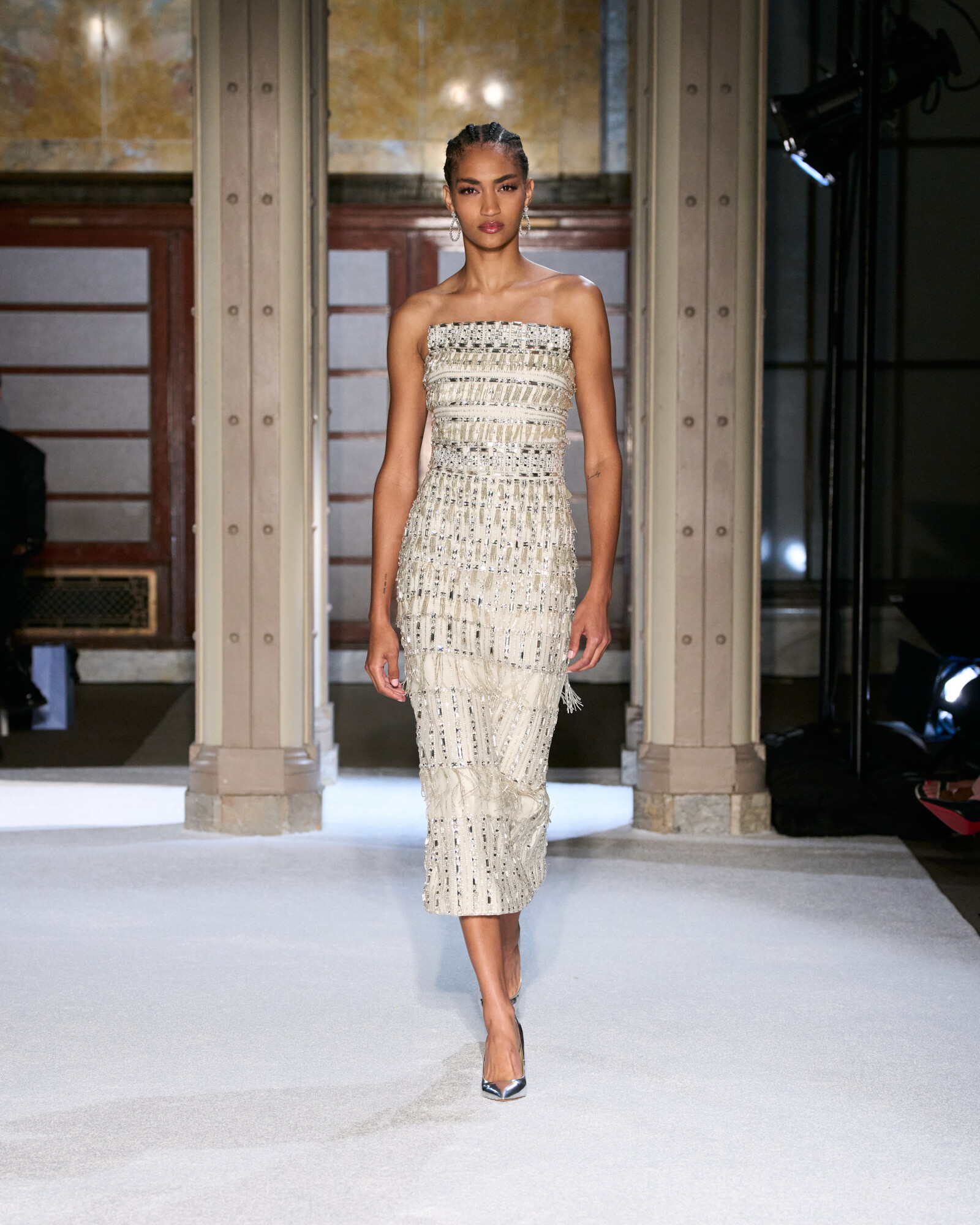 A bemutató alapötlete a modernista festők motívumaiból indult ki. Roland a művészi részletek és a geometrikus absztrakció között játékosan újrafogalmazta a csillogást, így az nem pusztán dekorációként, hanem a forma és a fény által vezérelt narratíva részeként működött minden egyes darabon.