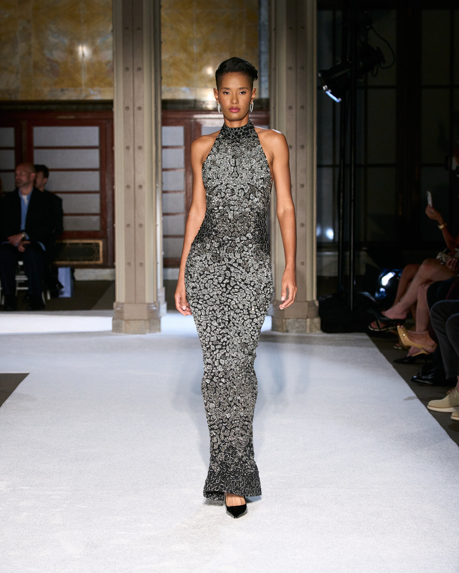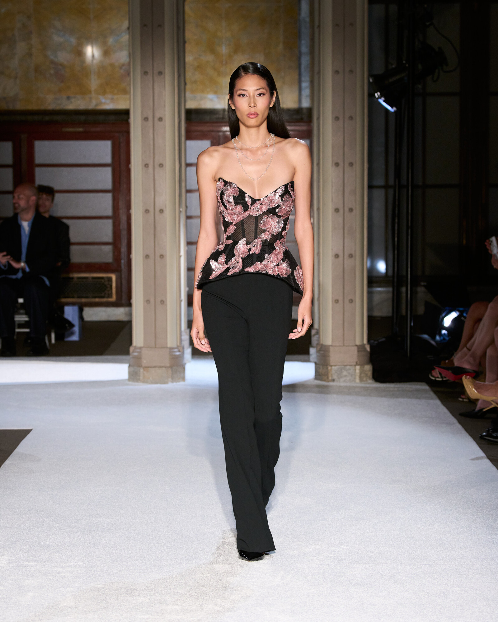 A lézervágás, a fémfóliázás, az aprólékos és precíz gyöngyözés csak fokozták a látványvilágot. Az estélyi ruhák finom balansza a testhez simuló, ferde vonalak és a teátrális uszályok között drámai jelenlétet teremtett. A kitűnően szabott, karcsú szmokingok, a ceruzaszoknyák és a magas derekú nadrágok ugyanolyan gondossággal készültek, így a gyűjtemény vörös szőnyegre szánt sziluettjei. Mert az elegancia nemcsak a díjkiosztó gálákon létezik...