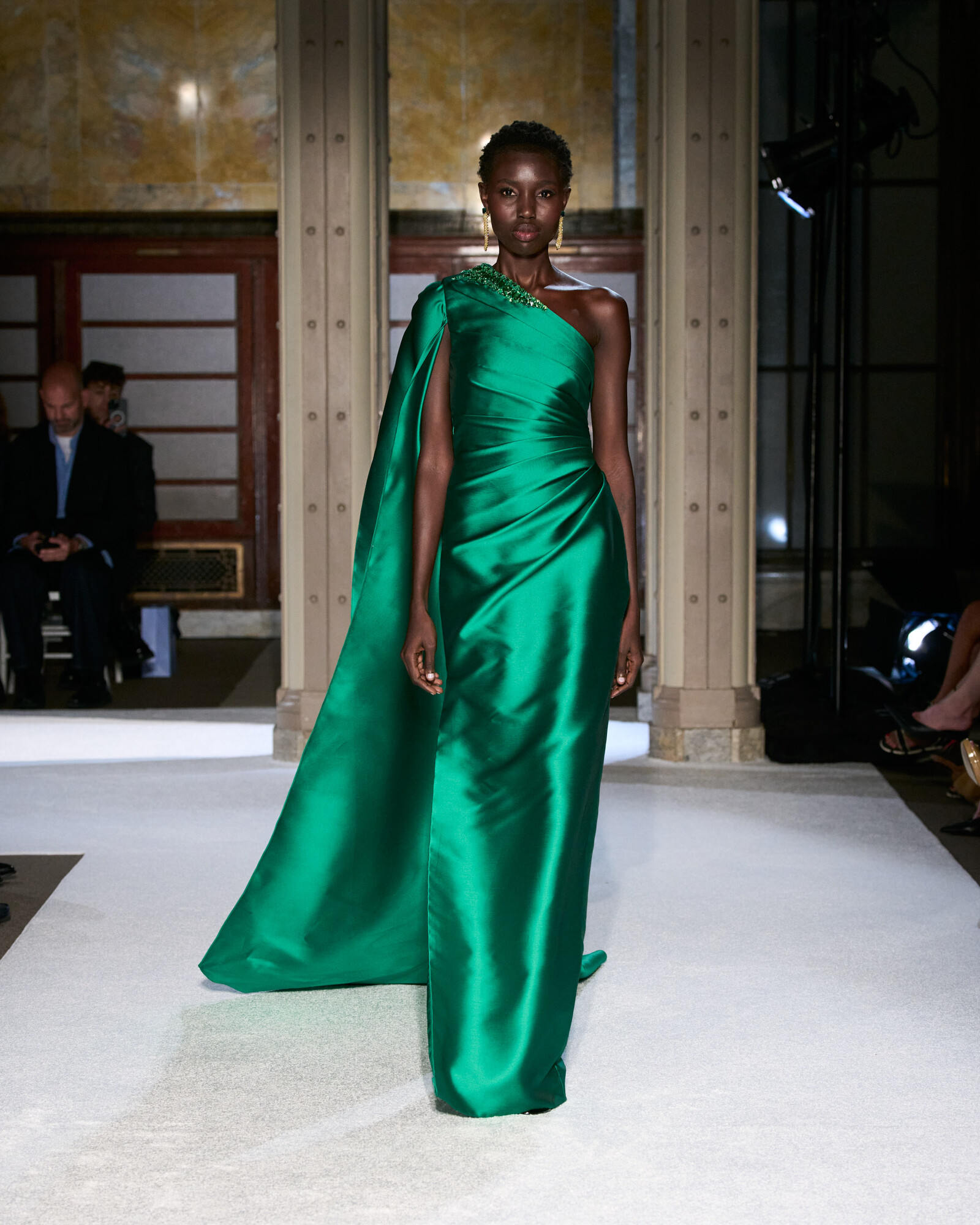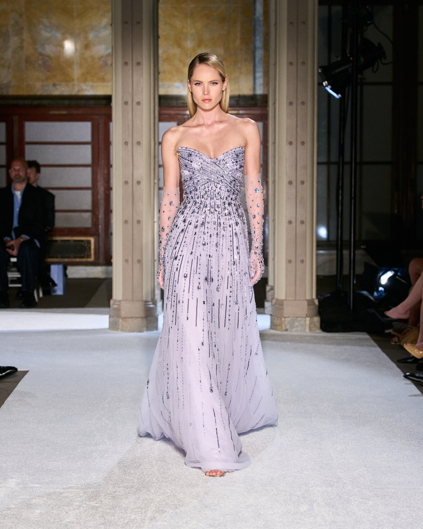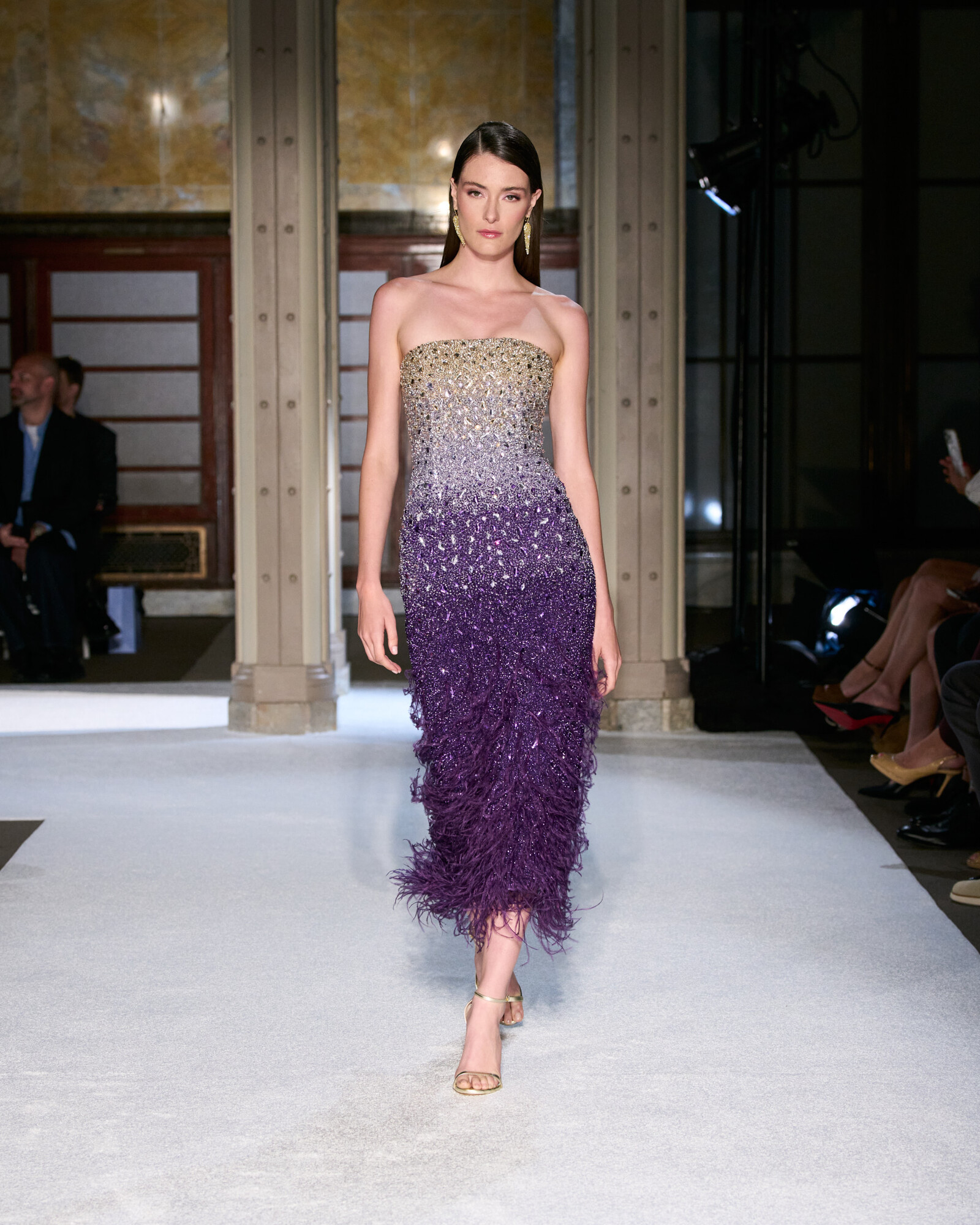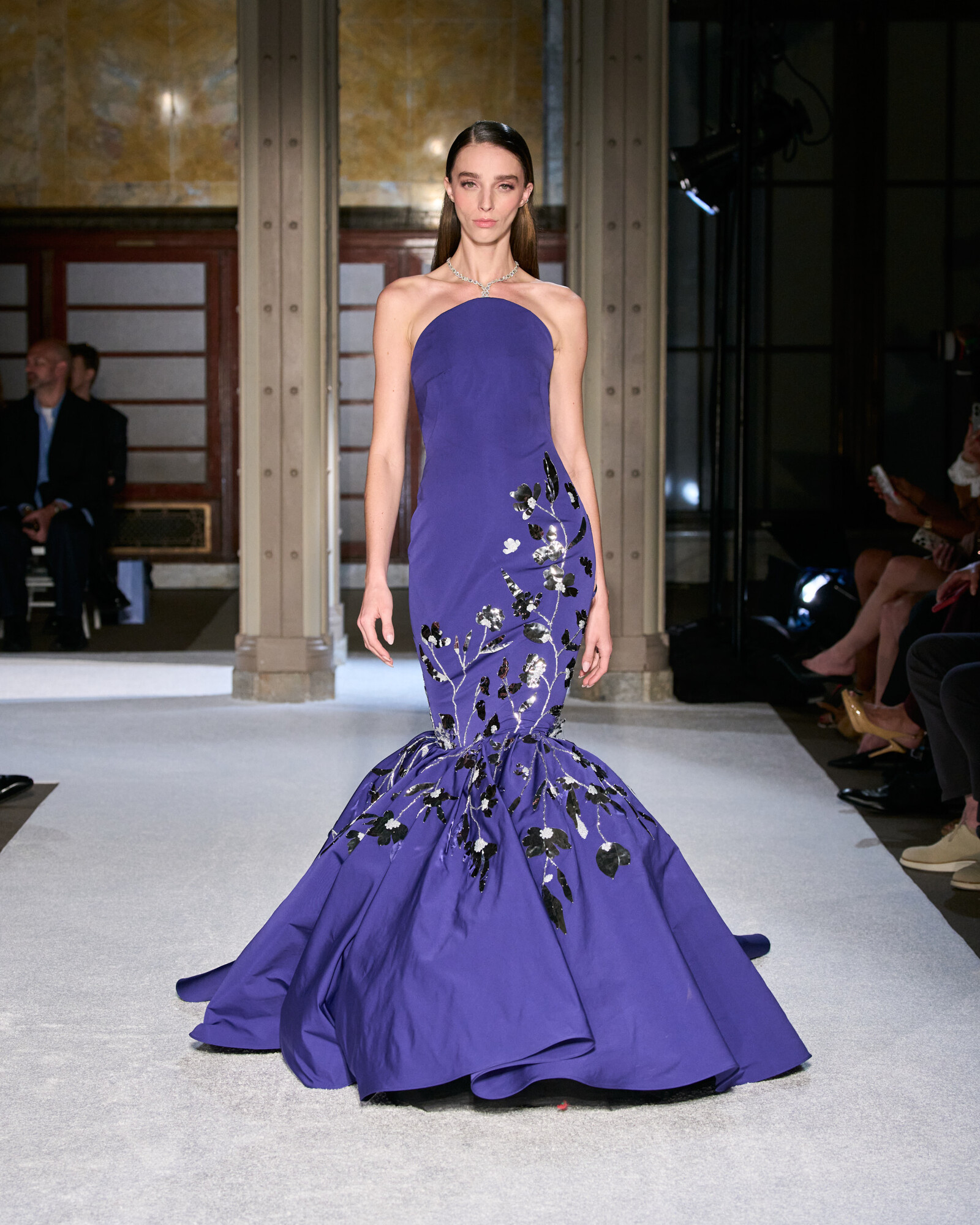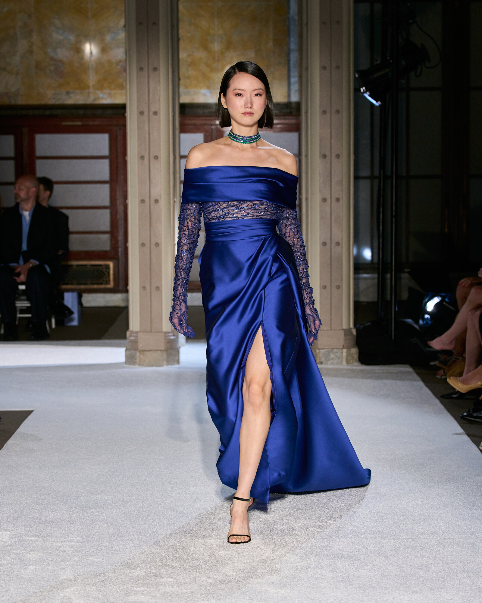 Roland szabásvonalaiban a tudatos építkezés és a lágy esés különleges egyensúlyt teremtenek. A szűkített derékrészek, a határozott vállak és az aszimmetrikus szegélyek klasszikus arányokat adtak, miközben a belső varrások és a precíz ívek hordhatóvá teszik a drámai volument. Izgalmasak továbbá az ombre festések és a réteges áttetszőségek, ezek mozgást és mélységet adnak a sziluetteknek, a sugaras kristálydíszítések pedig vezetik a tekintetet, fókuszpontot alakítanak ki.
