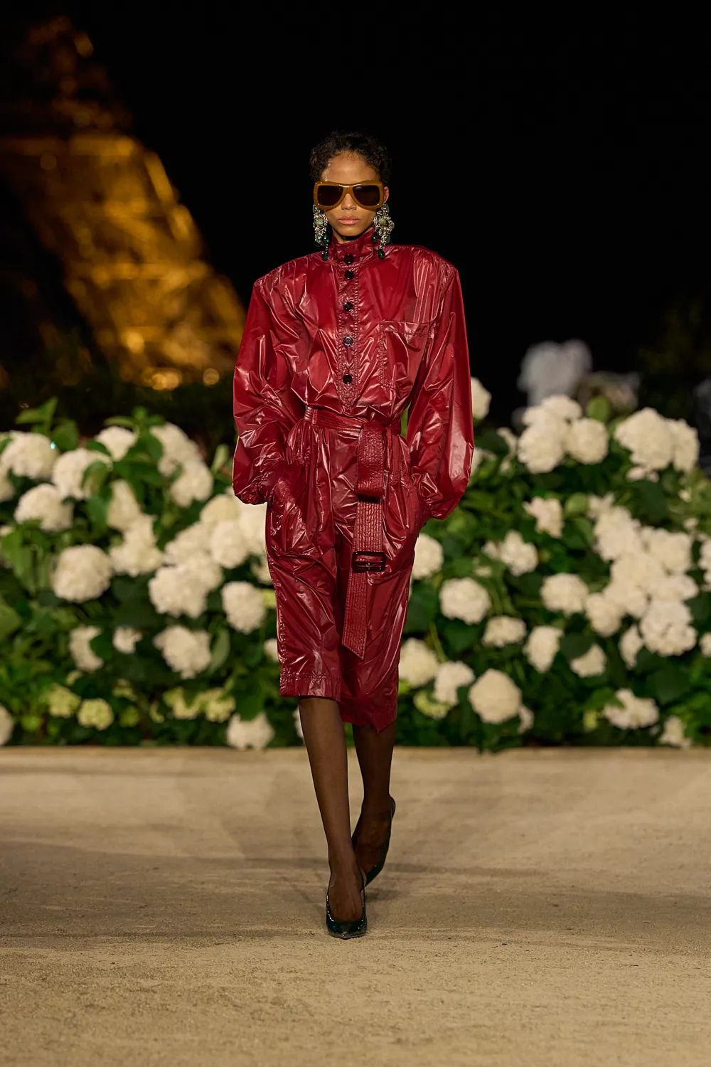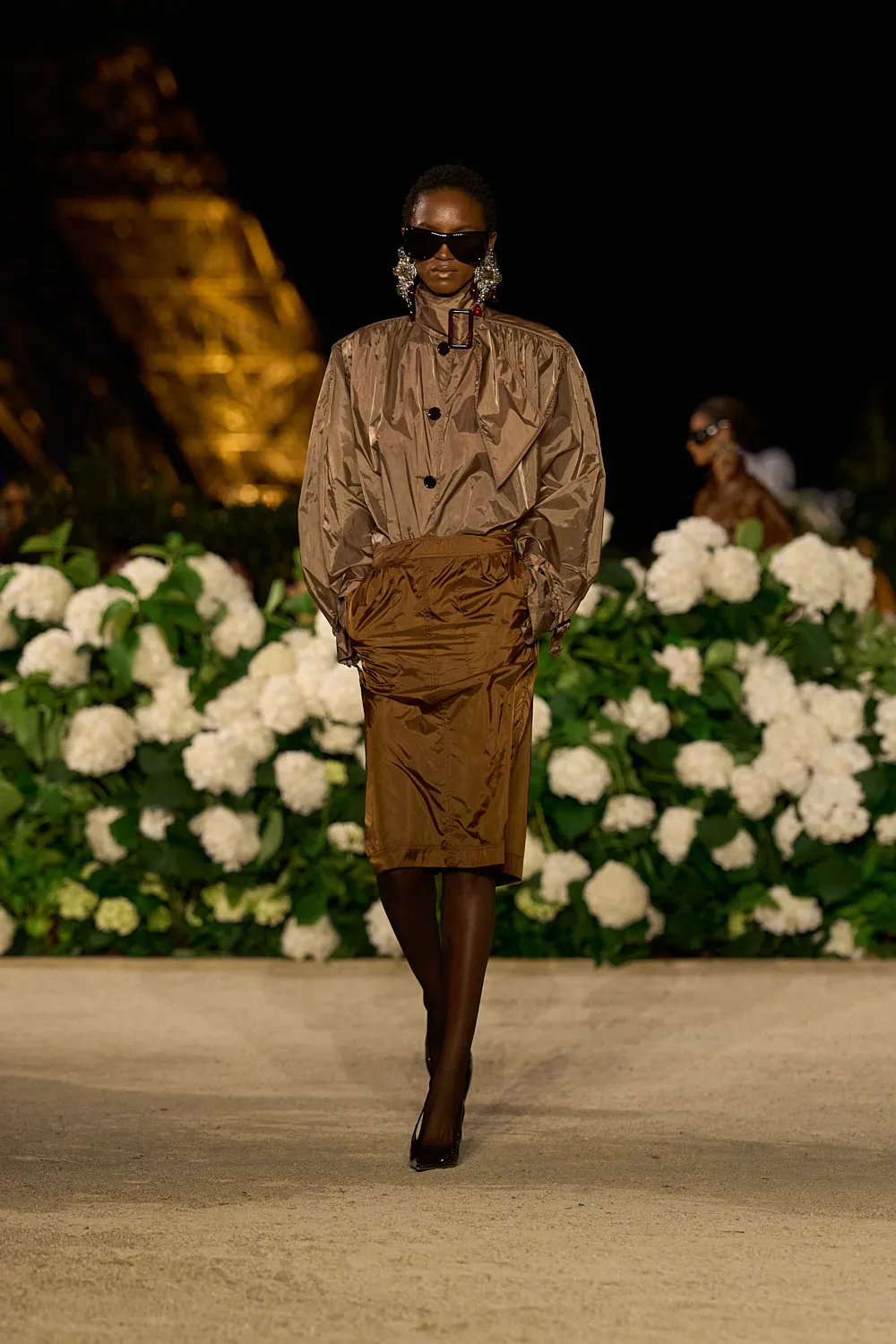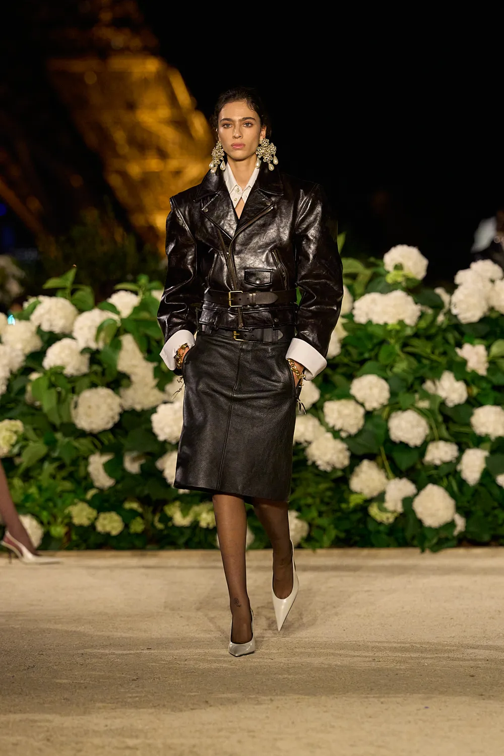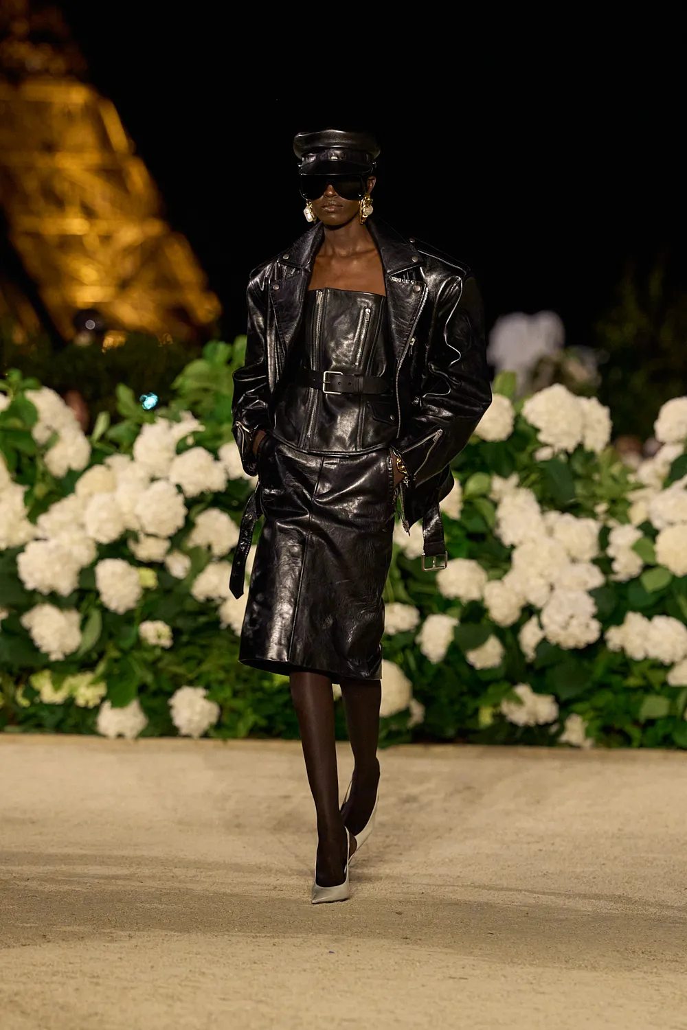 A Saint Laurent 2026-os tavaszi-nyári kollekciója a keménység és a törékenység határán egyensúlyozott. Az éles szabású bőrdzsekik, a szigorú ceruzaszoknyák és a határozott vonalú blúzok erőteljes nyitányt adtak ennek a pazar ruhasorozatnak. Mintha az éjszakai élet intrikái keltek volna életre a sziluettekben, annyi titok, merészség, lendület és újragondolt elegáns pillanat siklott végig a kifutón. A bőr itt nem csupán anyag, hanem valódi páncél volt a világ viszontagságaival szemben, a formák pedig tekintélyt sugalltak, miközben finoman érzékiek maradtak.