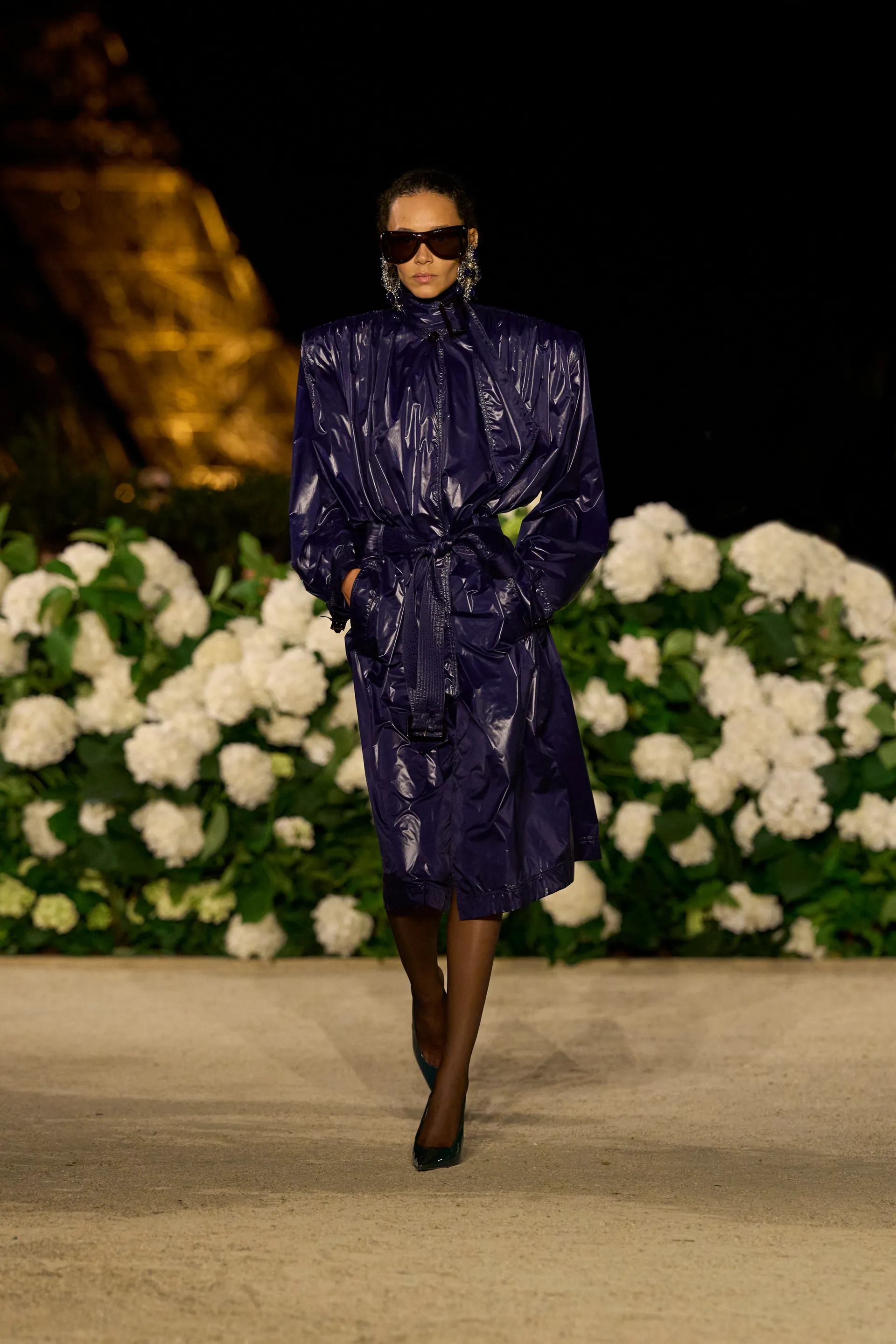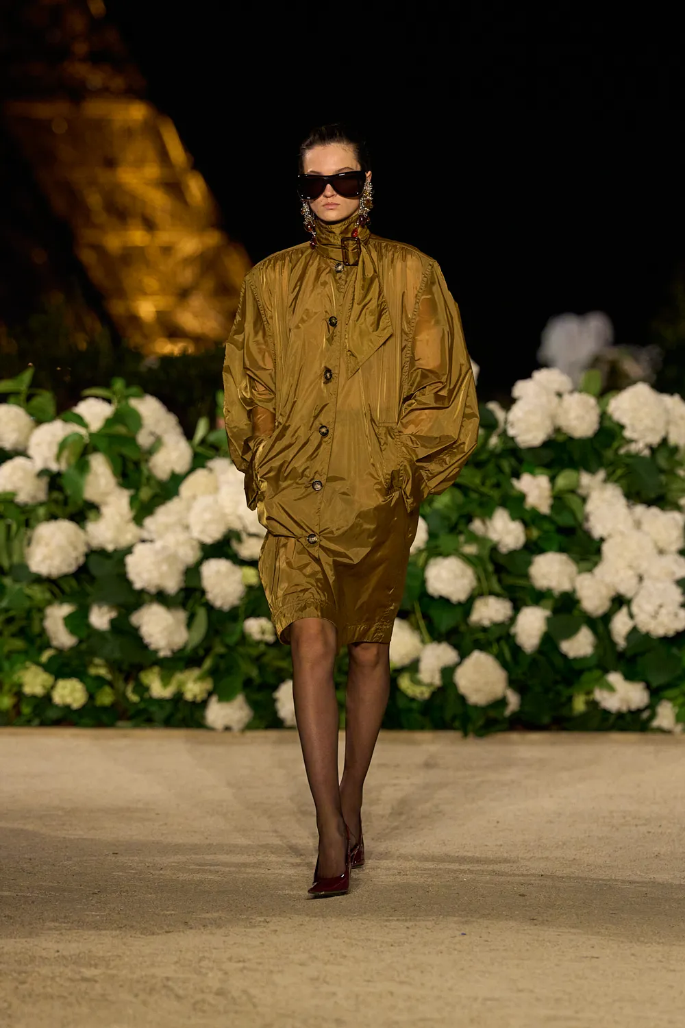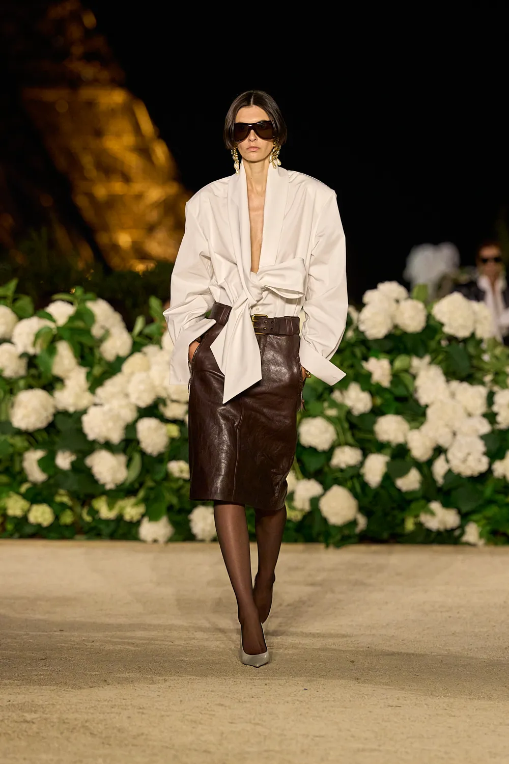 A bemutató narratív íve Yves Saint Laurent haute couture világától a kemény városi sziluettekig terjedt. Vaccarello tisztelgett a történelmi referenciák előtt, miközben a megújulásra összpontosított, elkerülve a poros-borús nosztalgiát. Az eredmény egy olyan kollekció lett, amely nemcsak divatházként, hanem kulturális tényezőként is megerősítette a Saint Laurent pozícióját, mindezt tudatosan felépítve a vonzerő és a dac között tomboló feszültségre.