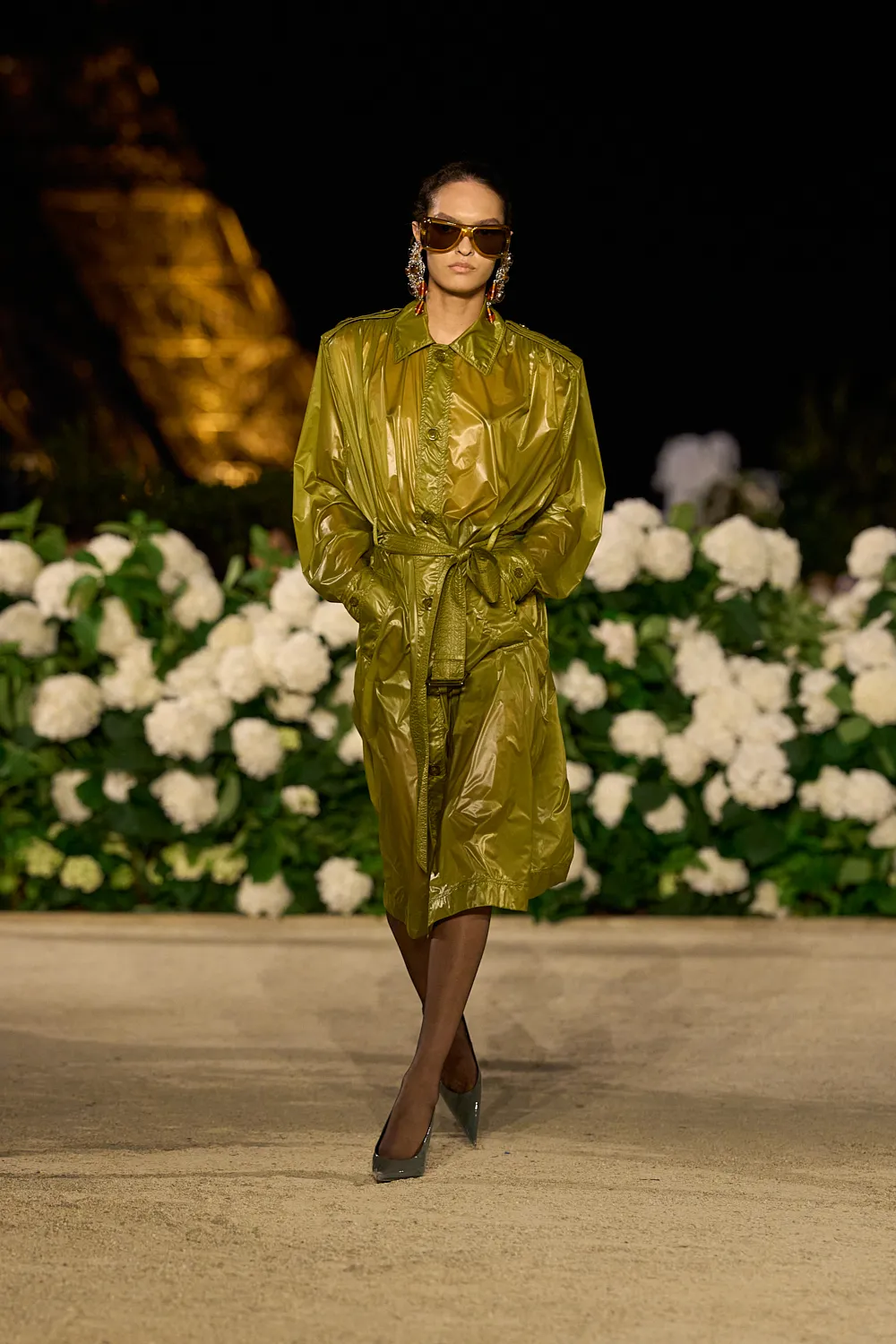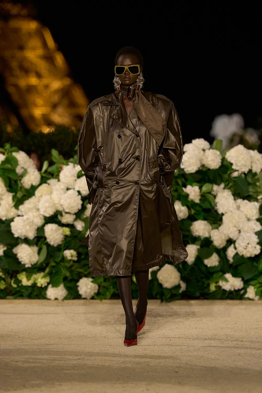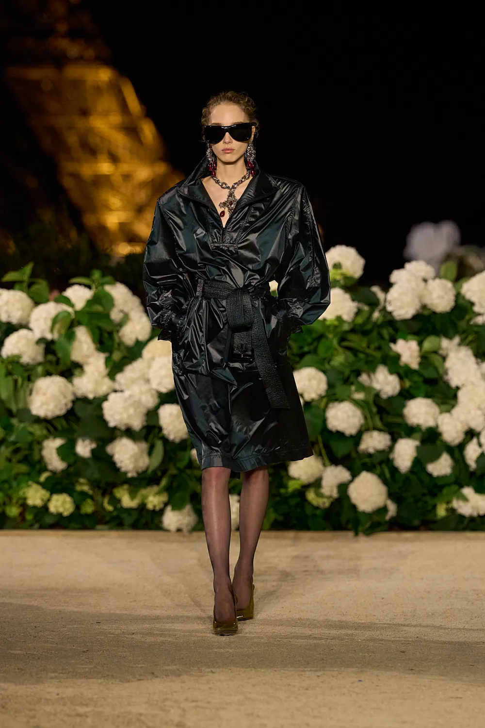 A bemutató narratív íve Yves Saint Laurent haute couture világától a kemény városi sziluettekig terjedt. Vaccarello tisztelgett a történelmi referenciák előtt, miközben a megújulásra összpontosított, elkerülve a poros-borús nosztalgiát. Az eredmény egy olyan kollekció lett, amely nemcsak divatházként, hanem kulturális tényezőként is megerősítette a Saint Laurent pozícióját, mindezt tudatosan felépítve a vonzerő és a dac között tomboló feszültségre.