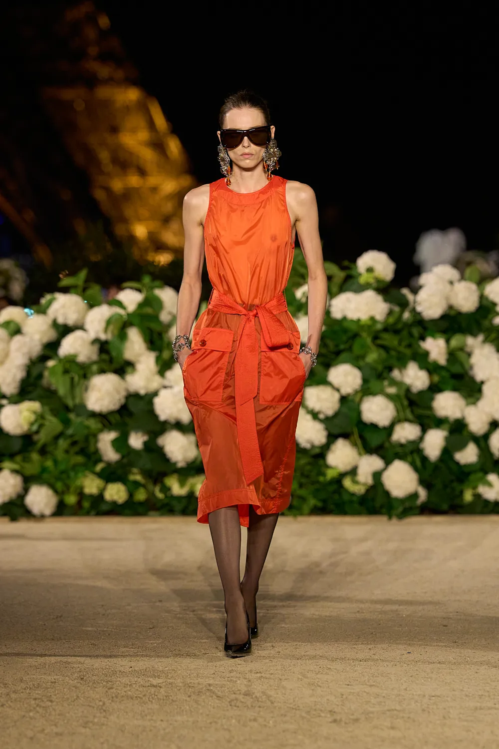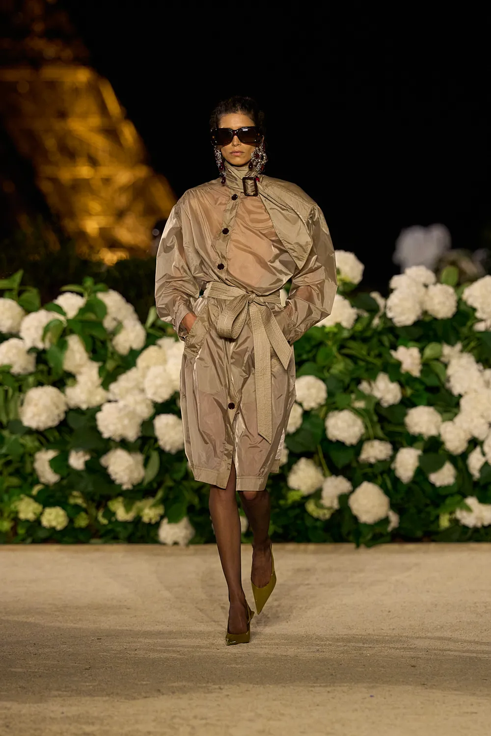 A Saint Laurent 2026-os tavaszi-nyári kollekciója nyitotta a Paris Fashion Weeket, méghozzá a lehető leglátványosabb helyszínen, az Eiffel-torony lábánál. Anthony Vaccarello kreatív igazgató harmincadik bemutatóját egy tudatos és merész szándéknyilatkozattal jelölte meg: a Saint Laurent kódjait a legtisztább és leghatásosabb formába sűrítette. Az ikonikus YSL (Cassandre-logó) formára alakított, fehér hortenziákkal telepakolt hatalmas francia kerti díszlet egyszerre volt lenyűgöző látványvilág és hozott el számunka intim pillanatokat, tökéletes keretet adott a márka provokatív és modern eleganciát sugárzó kettősségének.