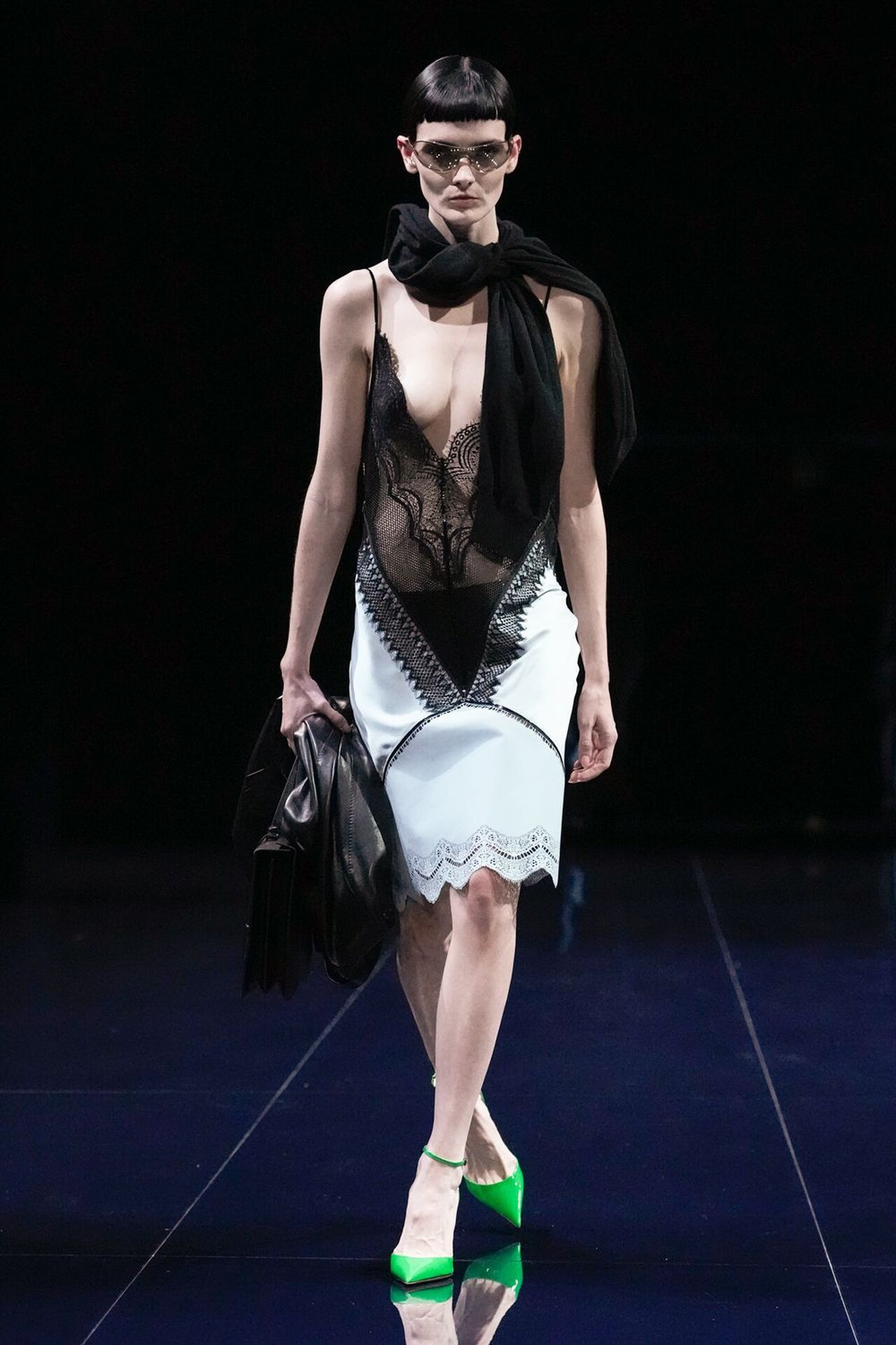 A mély dekoltázsok, a sifonon átszűrődő testkontúrok és a feszes viszkózruhák alatt kirajzolódó mellek az erotika határmezsgyéjén egyensúlyoztak. Roppant izgalmas és merész koncepció, hogy az egyes kiegészítők – például a szandálra tekert acélgyűrű – a fétisvilágból divattárggyá alakított elemek is felvillantak.