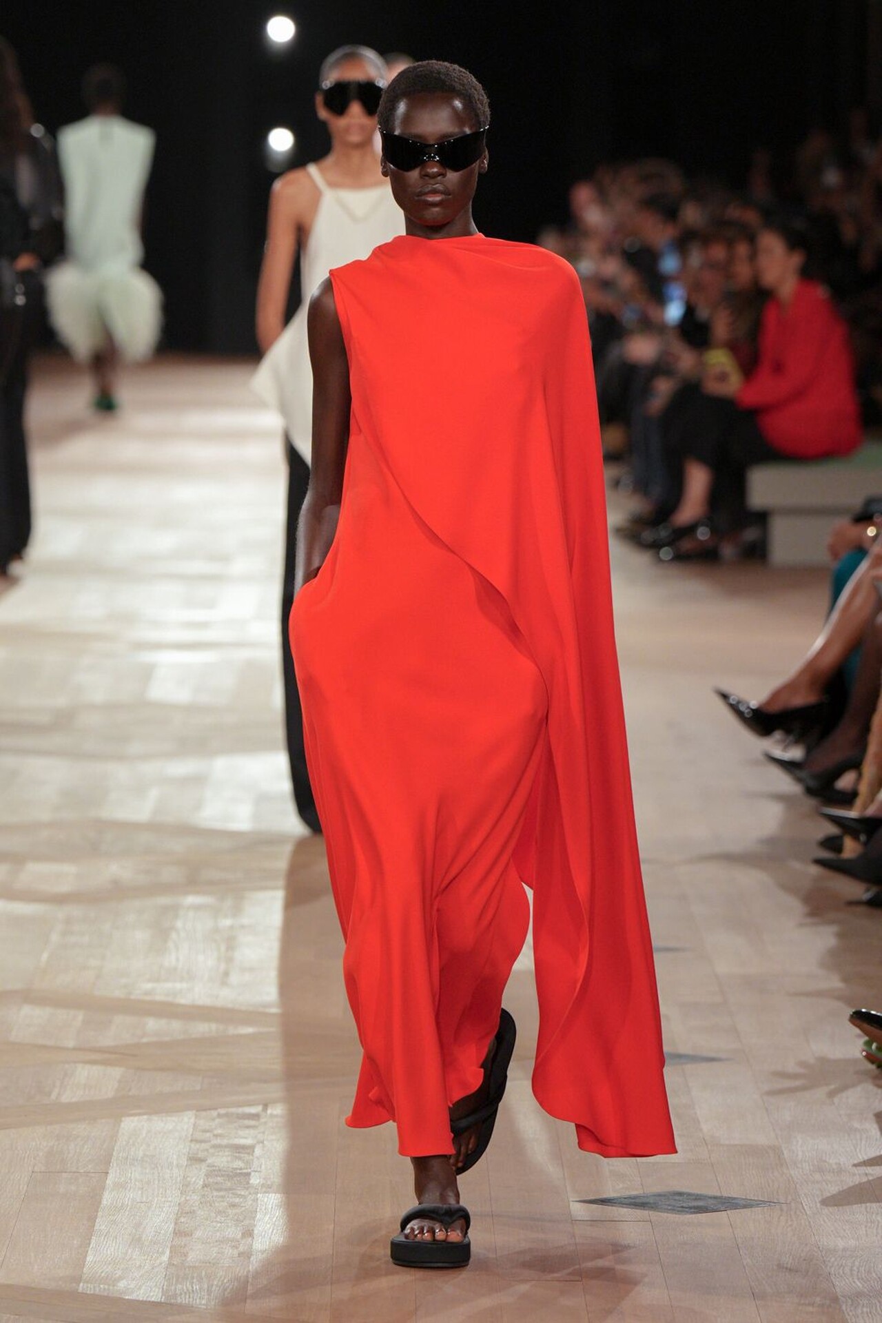A színekben a Balenciaga-szigor dominált. Fekete és fehér, persze monasztikus tisztaságban, néha megtörve egy-egy vibráló árnyalattal. Szerencsére megjelentek a Piccioli-világ árnyalatai is, a jáde, a korall, a vérvörös és az élénk citrusos sárgászöld, ezek lüktetése finoman visszautalt a Balenciaga-archívum expresszív tónusaira.