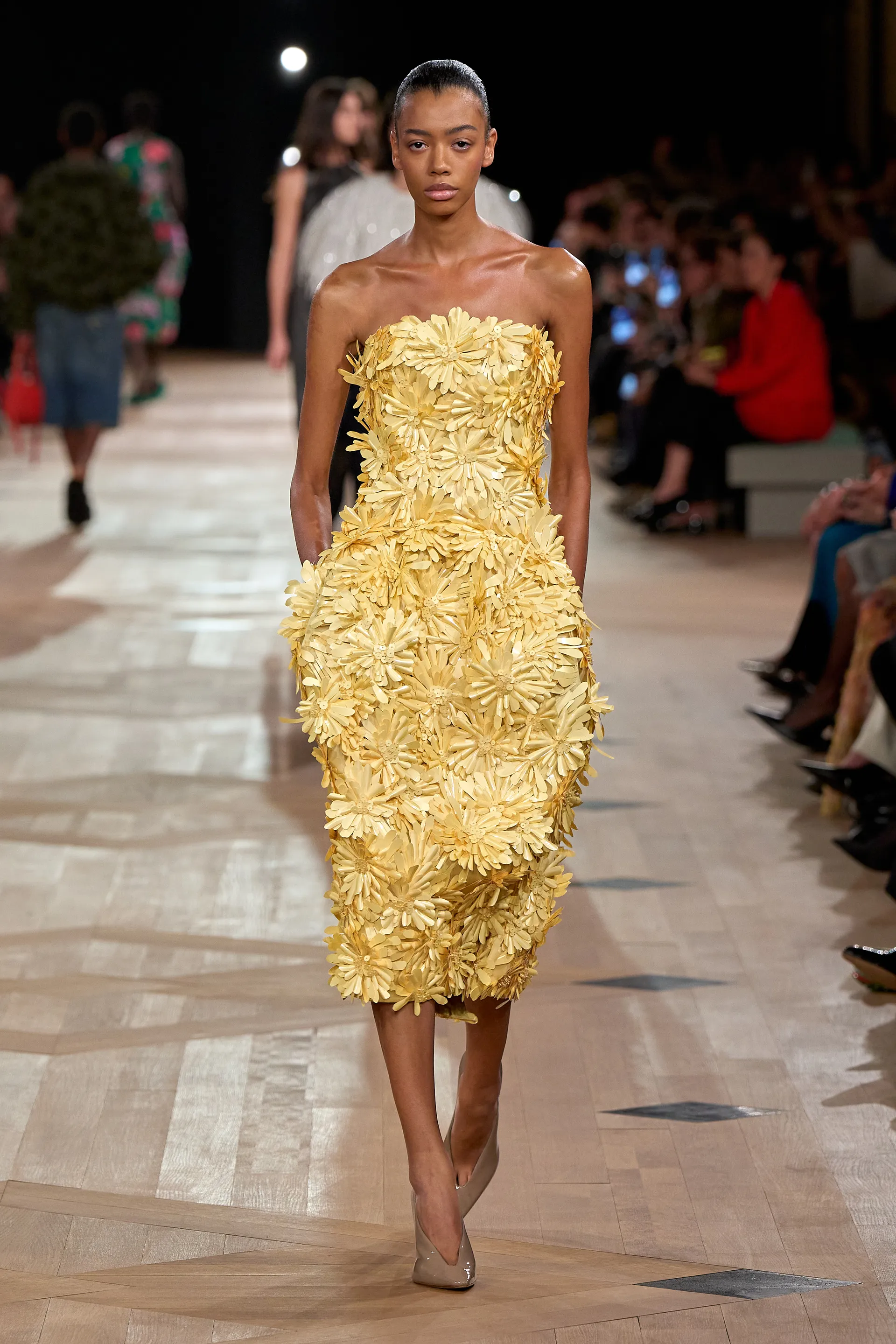 Az építészíti formavilág mellett a díszítés szerkezeti funkciót kapott. A virág- és indamotívumok, a textúrált hímzések és az anyagtollak újraformálták az arányokat, a rövidített felsők szoborszerű, holdszerű formát kaptak. Piccioli Balenciaga módszertanát a teljes ruhatárra kivetítette. A kifutón láthattunk laza nappali viseleteket, többek között bomberdzsekiket és bő szárú culotte-eket, az esti viseletek a lehető legabsztraktabb geometriába burkolták be a női testet.