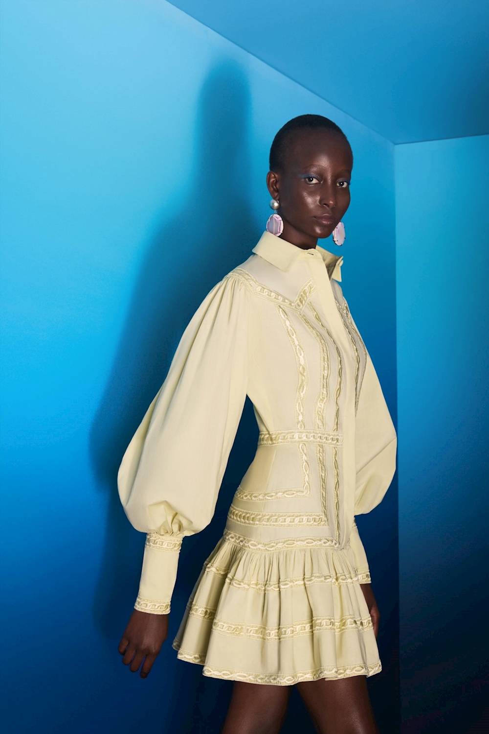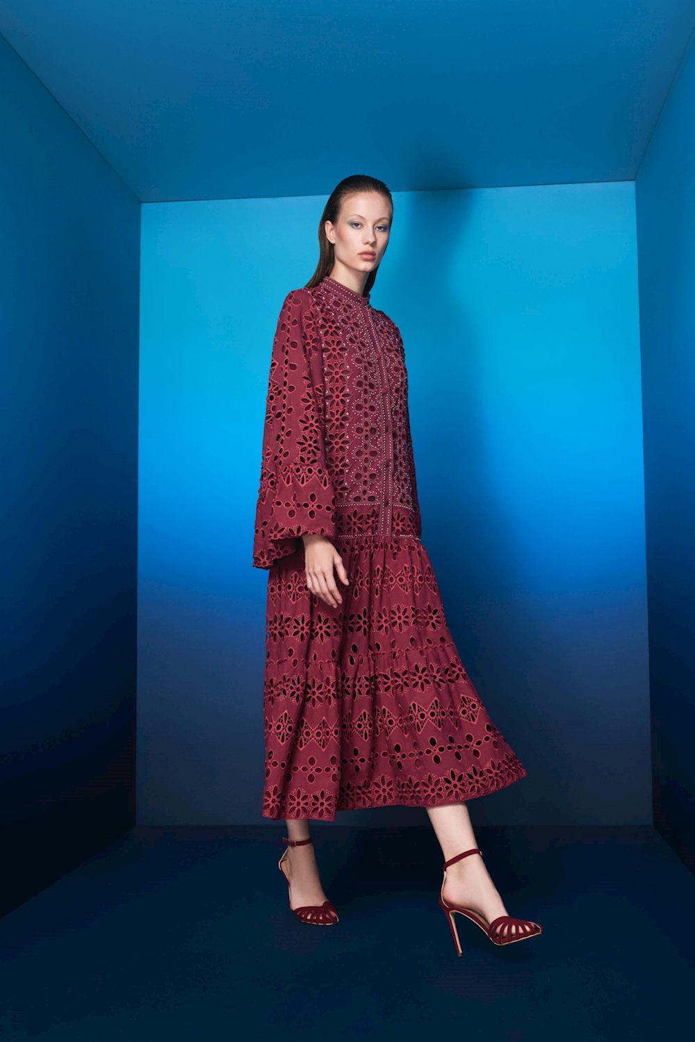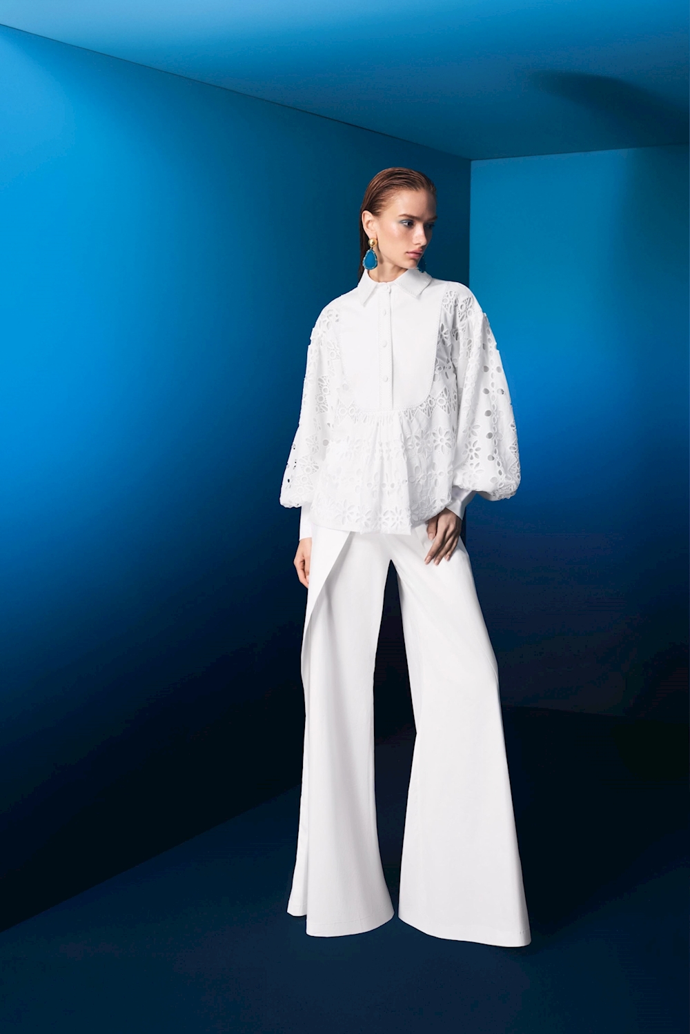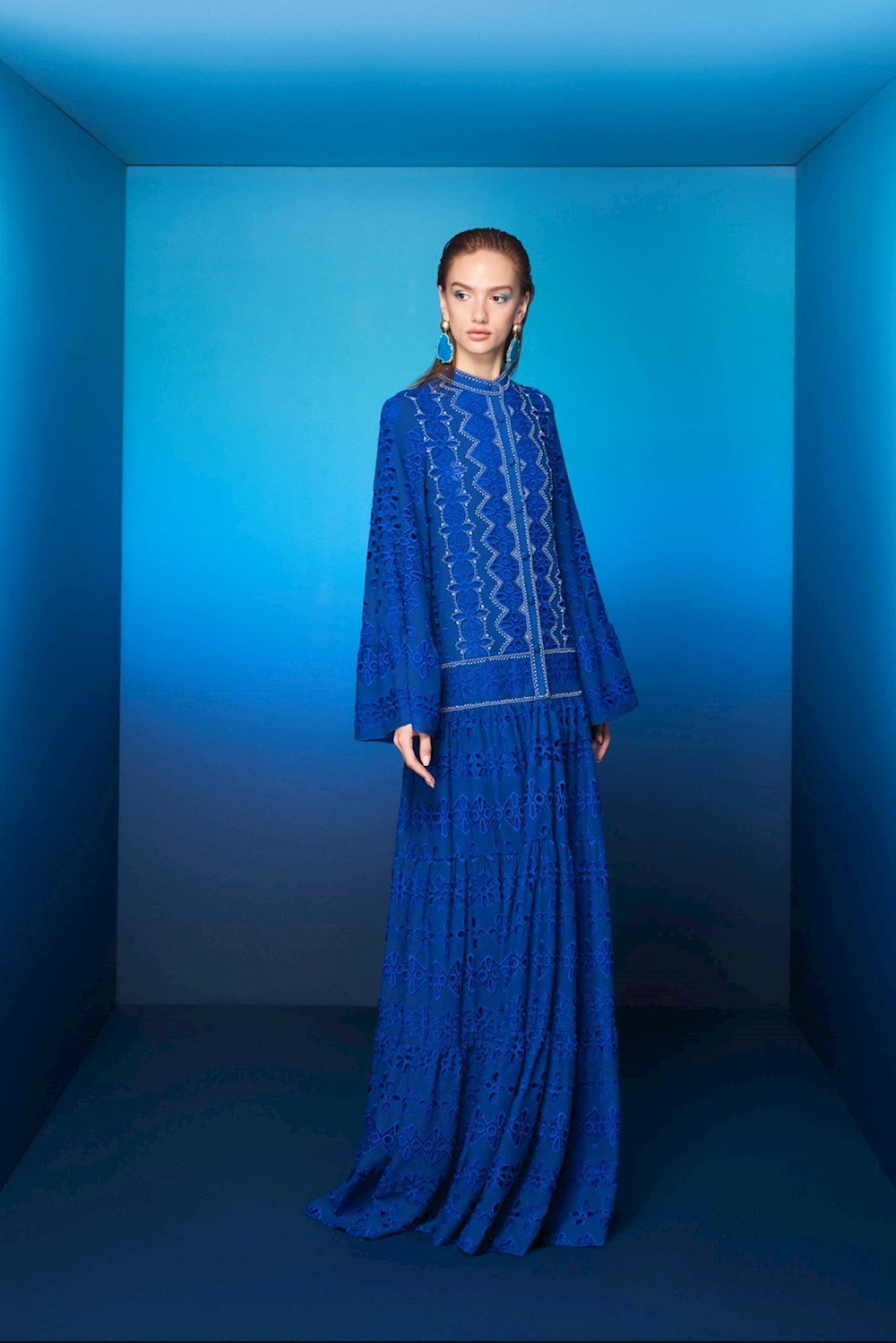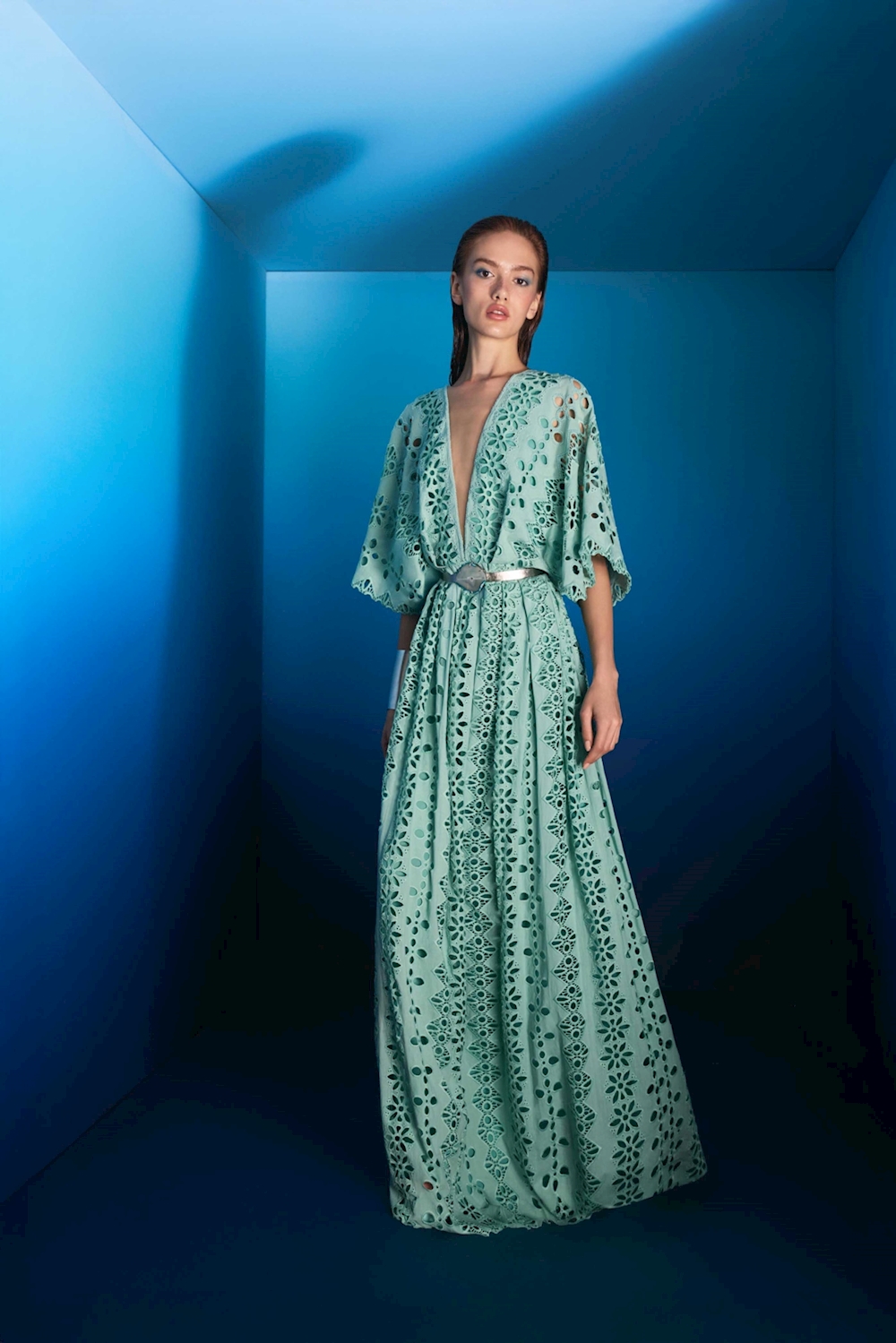Tony Ward ruhái folyékony rétegekben bontakoznak ki. Az organza fodrok és a muszlinok úgy mozognak, mint a tengervíz az elsüllyedt város romjai között. A csillogó kristályok és a csipkék finom árnyai valósággal beborítják a felületeket, míg a taftok és a redők törésvonalakként hasadnak szét. A színpaletta a mélykék, az akvamarin és a lila árnyalatai között sodródik, amelyet a kvarcrózsaszínek és a lágy pasztellek oldanak fel. A fekete, az ezüst és a halvány arany fényei mintha a víz alól szűrődnének fel. A gyöngyös hímzések koralltelepekként derengenek a mélyben – emlékeztetve bennünket arra, hogy ami elveszett, az soha nem tűnik el teljesen. Csak csendben időzik, várva, hogy emlékezzenek rá.