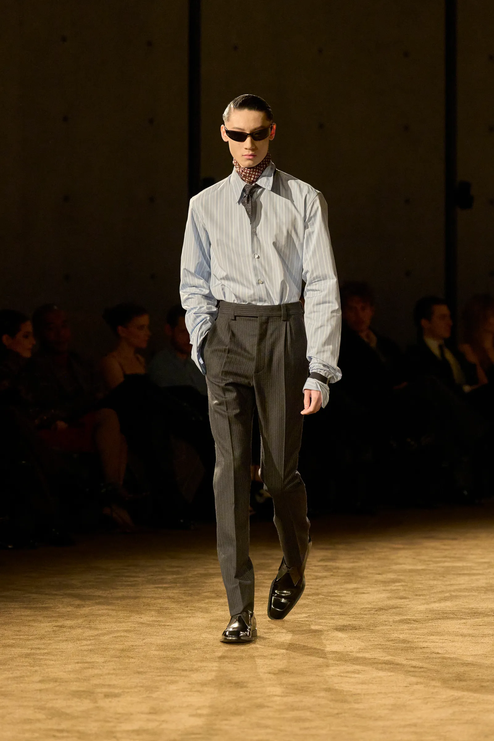 A Saint Laurent férfidivatja évek óta határozottan formálja az utcai öltözködést. Az öltöny-nyakkendő páros visszatérése, a hangsúlyos vállak, a sötét napszemüvegek és a bőr dominanciája mind-mind ennek a vizuális nyelvnek a részei. Vaccarello pontosan tudja, mikor kell nyíltan szexinek lennie, és mikor elegendő a sejtetés. Ez az egyensúly teszi a Saint Laurent-t ma ennyire meghatározóvá. A 2026-os őszi sorozat pedig tökéletesen bebizonyítja, hogy a Saint Laurent világa továbbra is a vágy, a sötétség és az elegancia határmezsgyéjén mozog. Ott, ahol a férfidivat igazán izgalmassá válik.